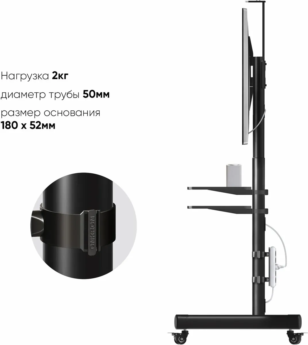 Подходит для мобильных стоек ONKRON: TS1881, TS1881DV, TS1380; FPRO2L-20. -