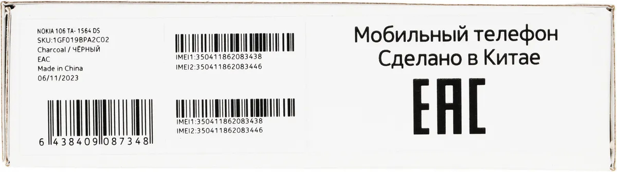 Мобильный телефон Nokia 106 (TA-1564) DS EAC черный моноблок 2Sim 1.8" 120x160 (1GF019BPA2C02)