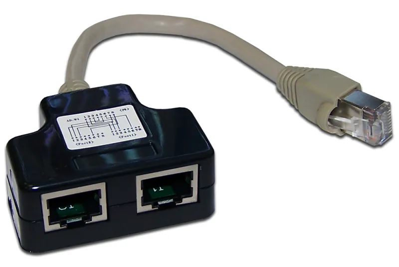 Y-адаптеры (разделители портов) предназначены для преобразования портов RJ-45. Применение Y-адаптеров позволяет удвоить количество портов на одном кабеле. Наличие общего экрана позволяет использовать данные адаптеры в экранированных кабельных системах, с -