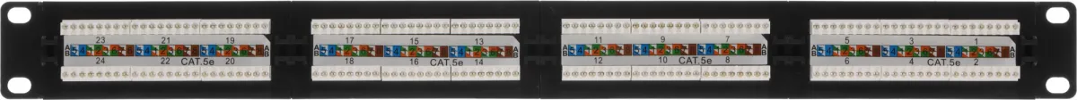 Количество портов 24, Тип разъемов RJ-45, Категория 5e, Высота 1 U -