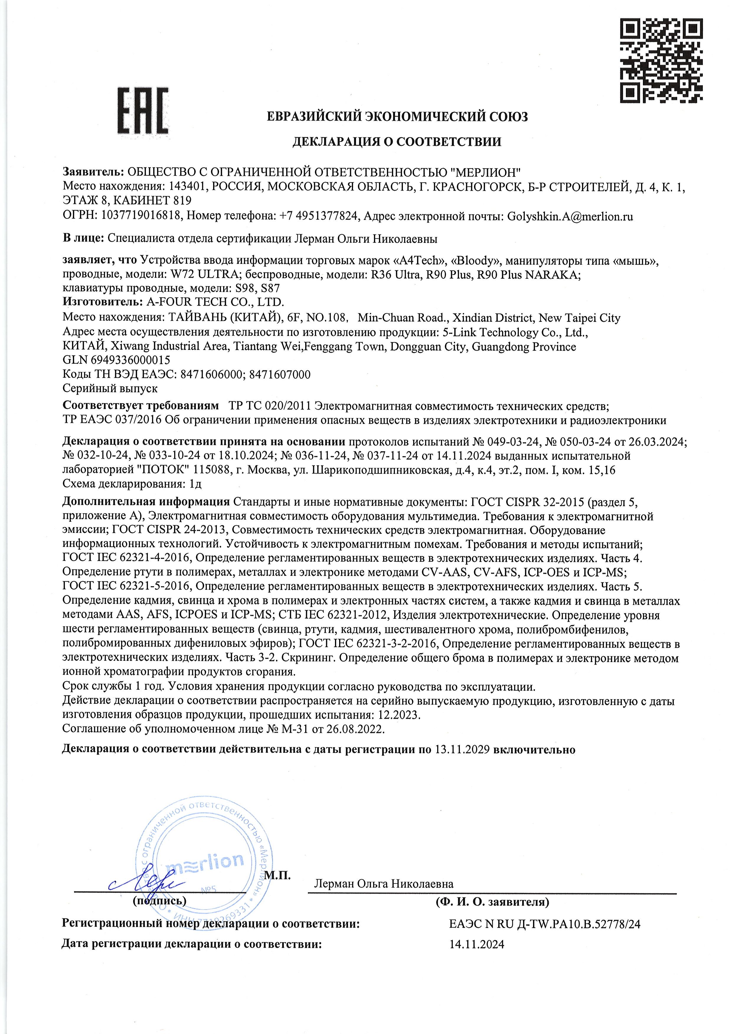 ЕАЭС N RU Д-TW.РА10.В.52778/24 | 13.11.2024 | 12.11.2029 |