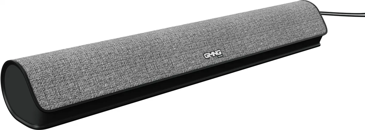 Стильный саундбар со звуковой схемой 2.0; черный корпус; тканевые вставки; удобное управление на корпусе -