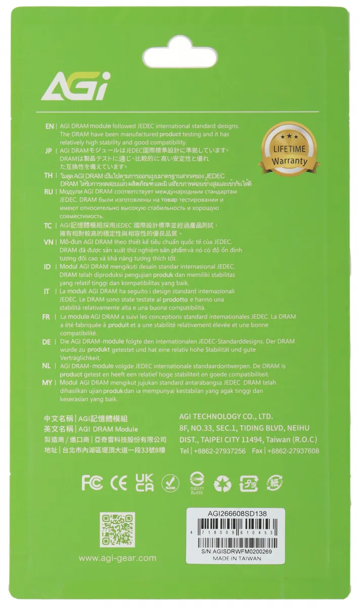 Память DDR4 8Gb 2666MHz AGi AGI266608SD138 SD138 RTL PC4-21300 SO-DIMM 260-pin 1.2В (AGI266608SD138)