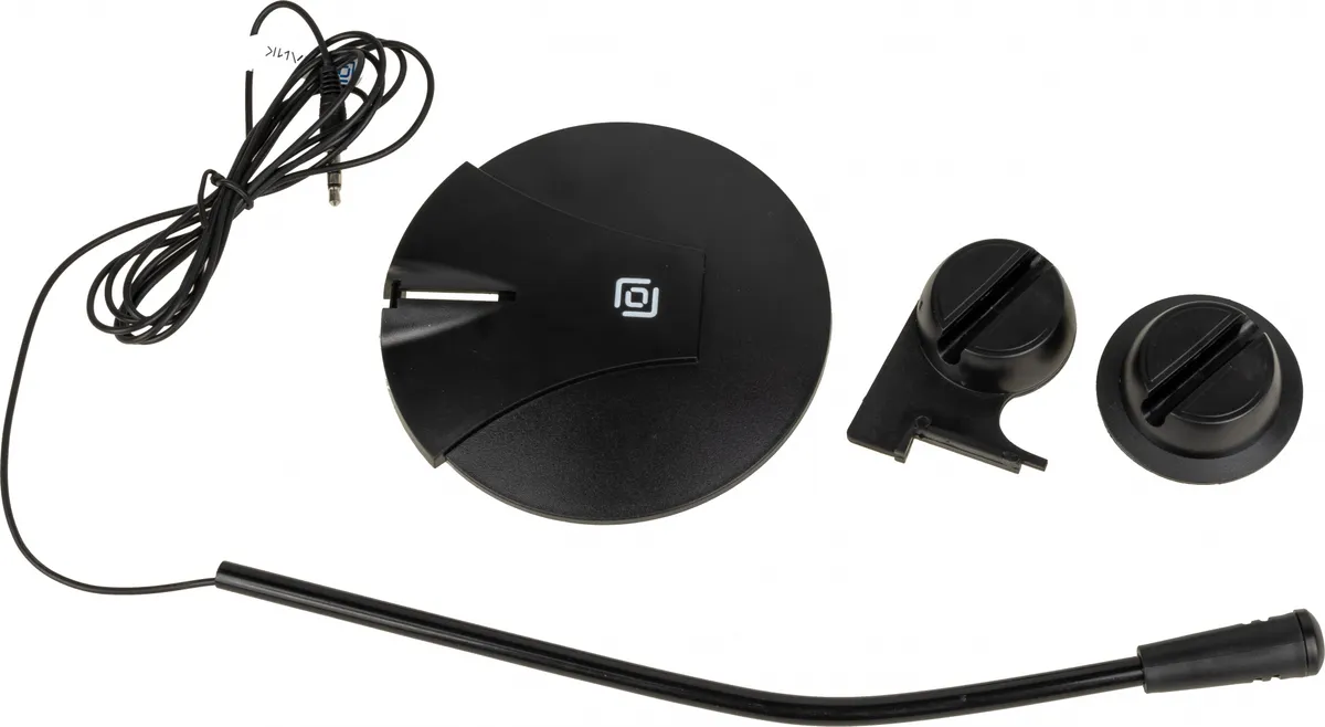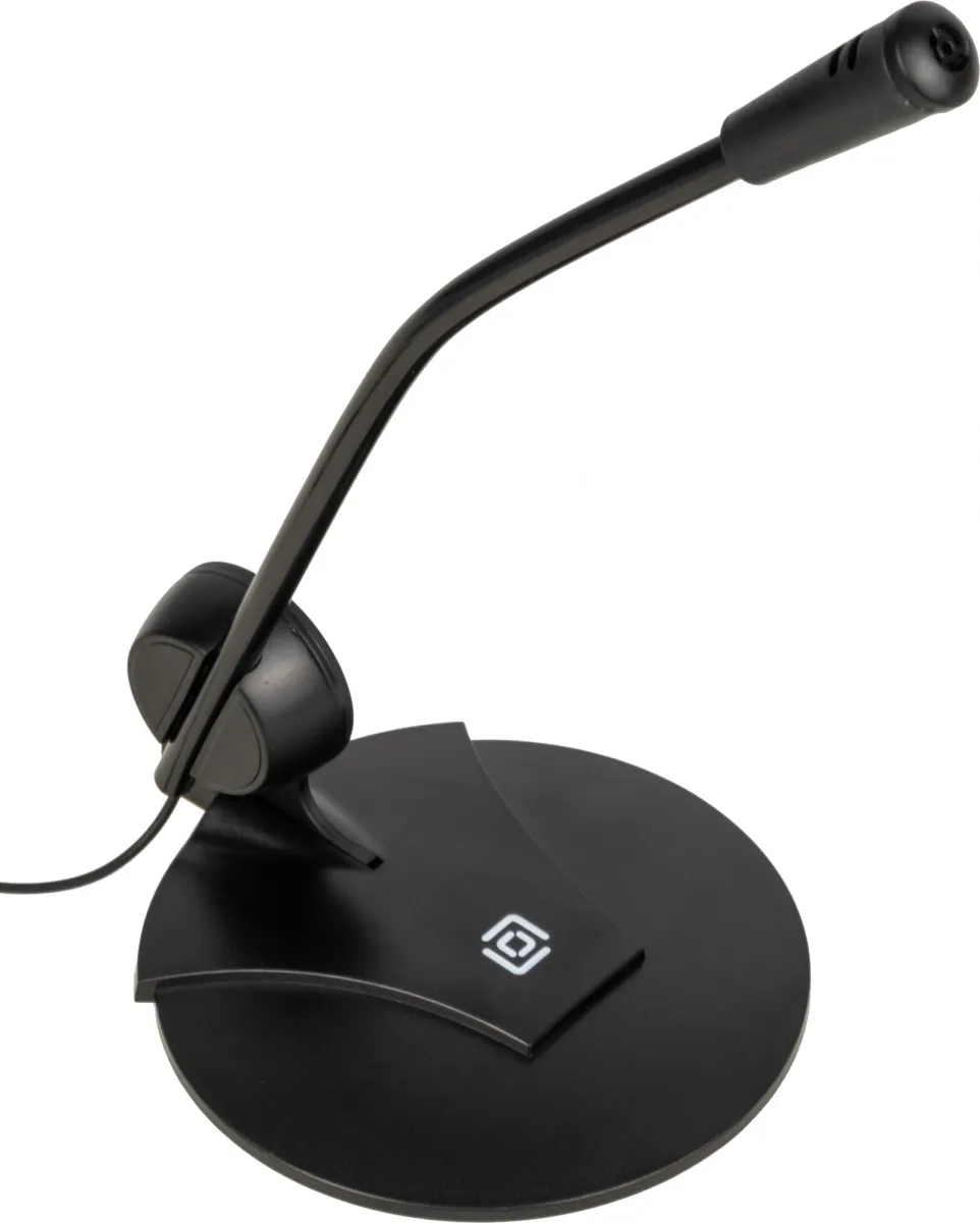 Микрофон для компьютера на поворотной опоре. Специальная подставка с поворотным держателем позволяет удобно расположить микрофон на столе. Дополнительный держатель с клейким слоем обеспечивает крепление на рамку монитора или другую вертикальную поверхност -
