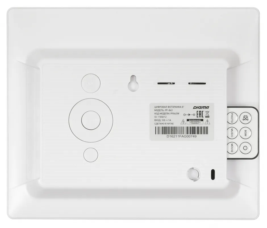 Настройка скорости слайд-шоу. Возможность удаления файлов с карты памяти. Возможность воспроизведения изображений в произвольном порядке. Язык: Русский/ Английский. -