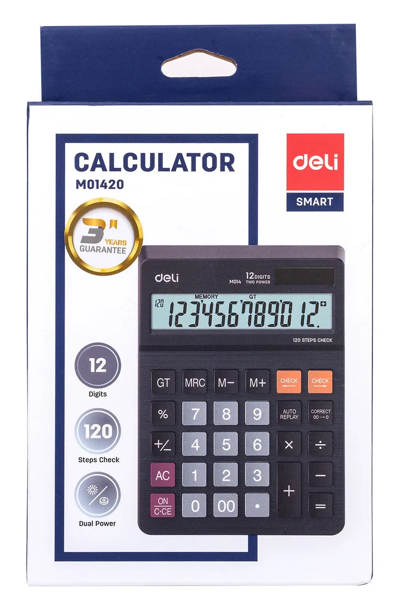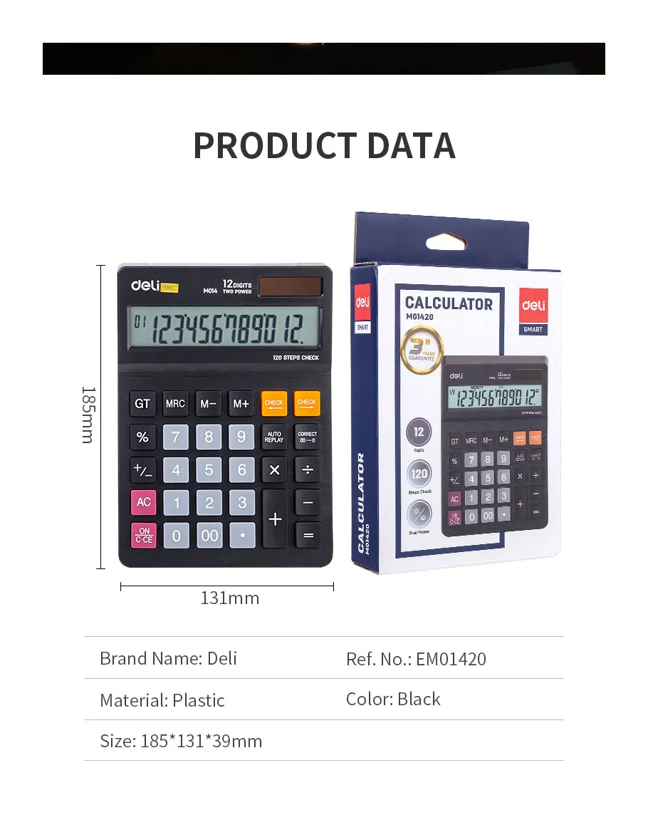 Калькулятор настольный Deli EM01420 черный 12-разр. (EM01420)