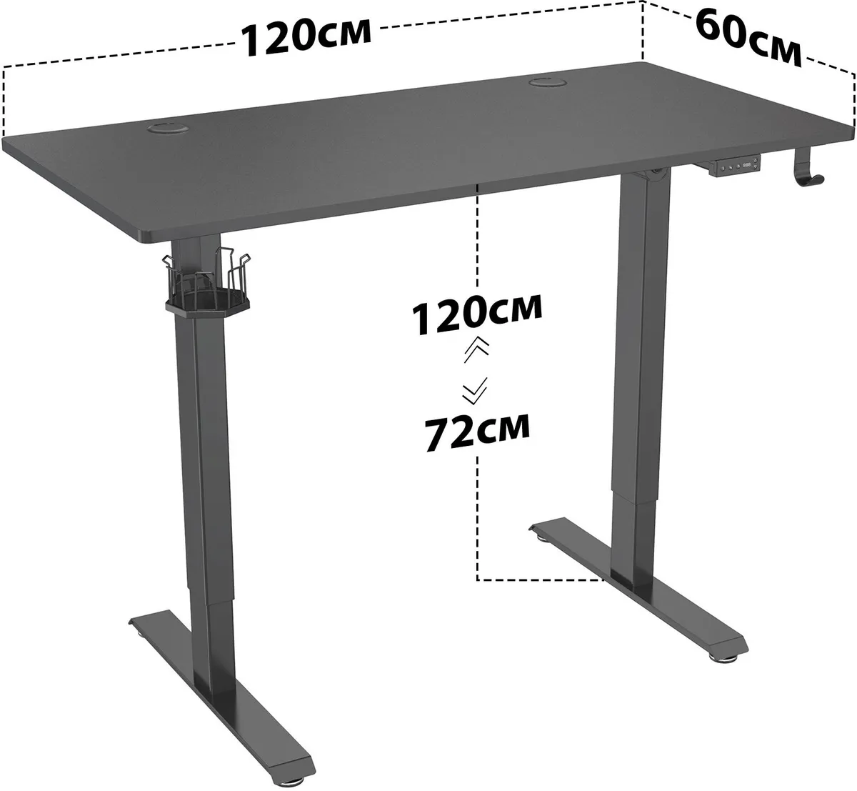 диапазон регулировки высоты: 72-120 см; скорость подъема/опускания: 25 мм/с; уровень шума при подъеме/опускании: <55dB; память положений: 2 -