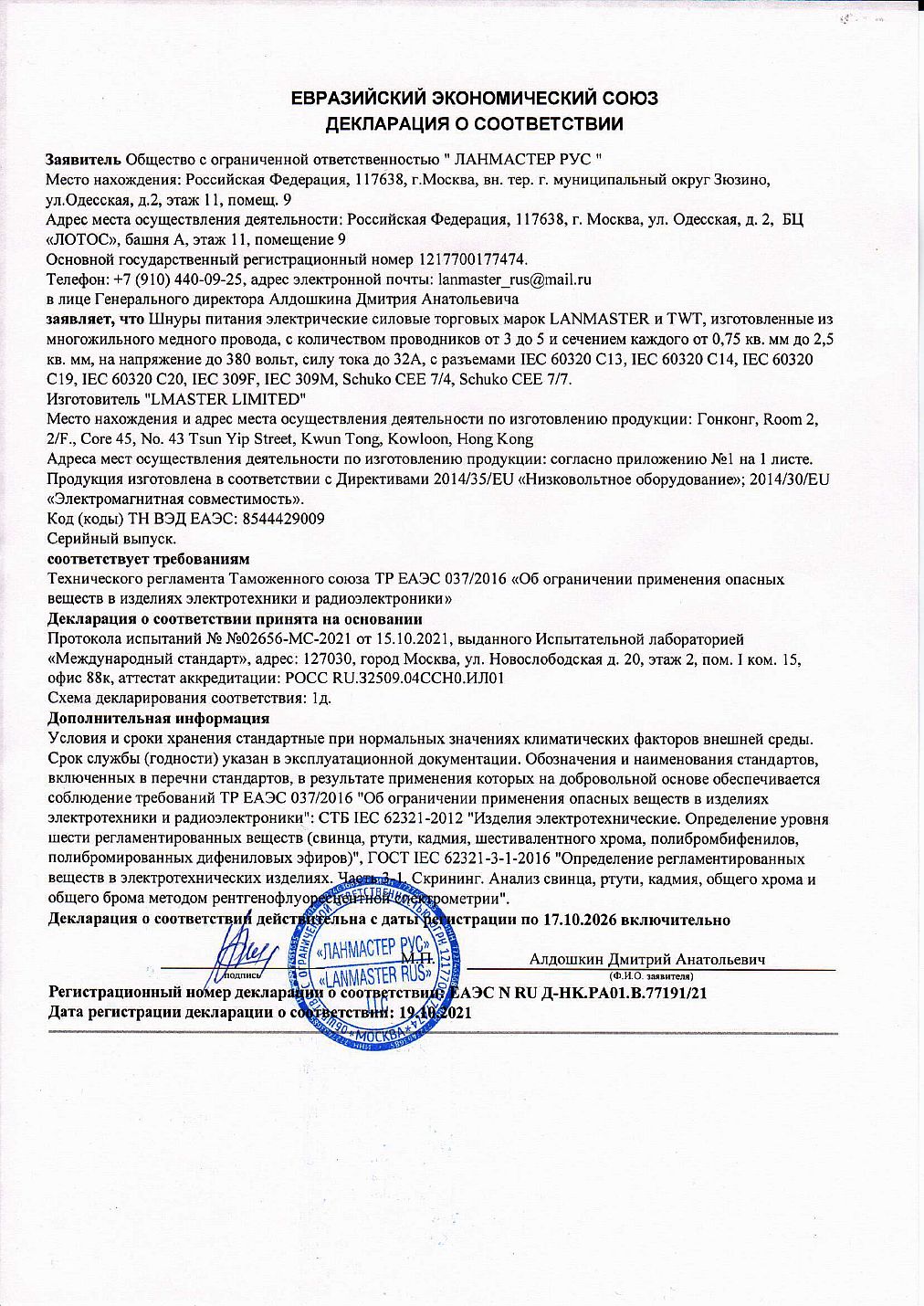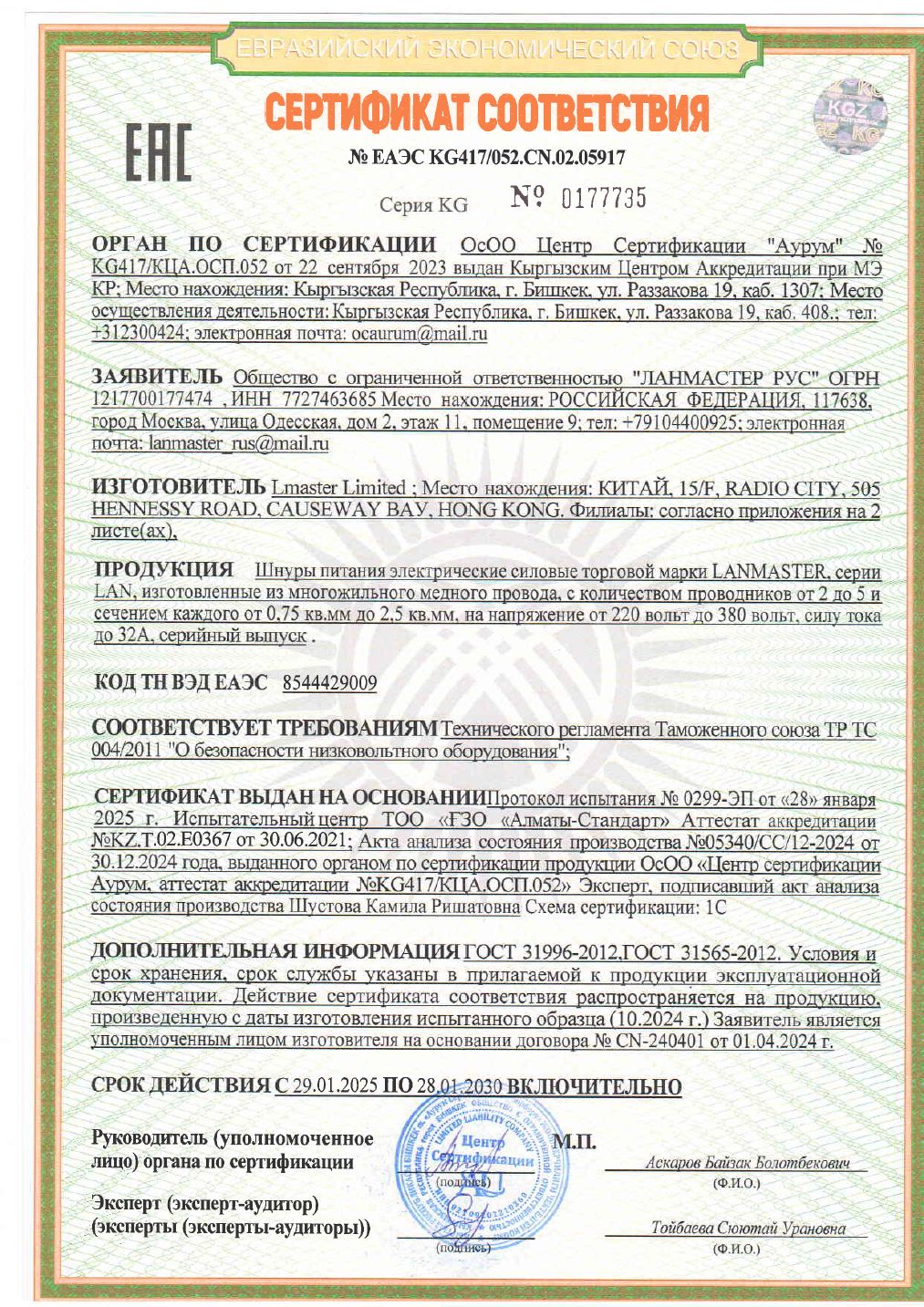 Шнуры питания электрические силовые торговой марки LANMASTER, серии LAN, изготовленные из многожильн...