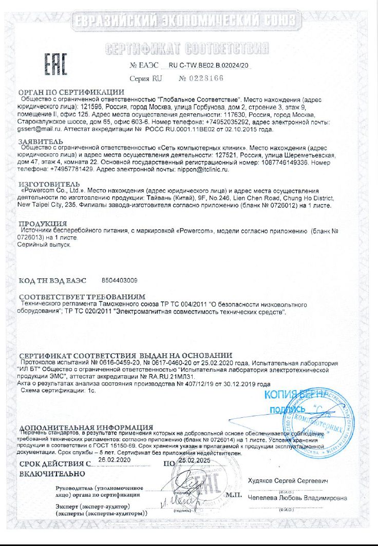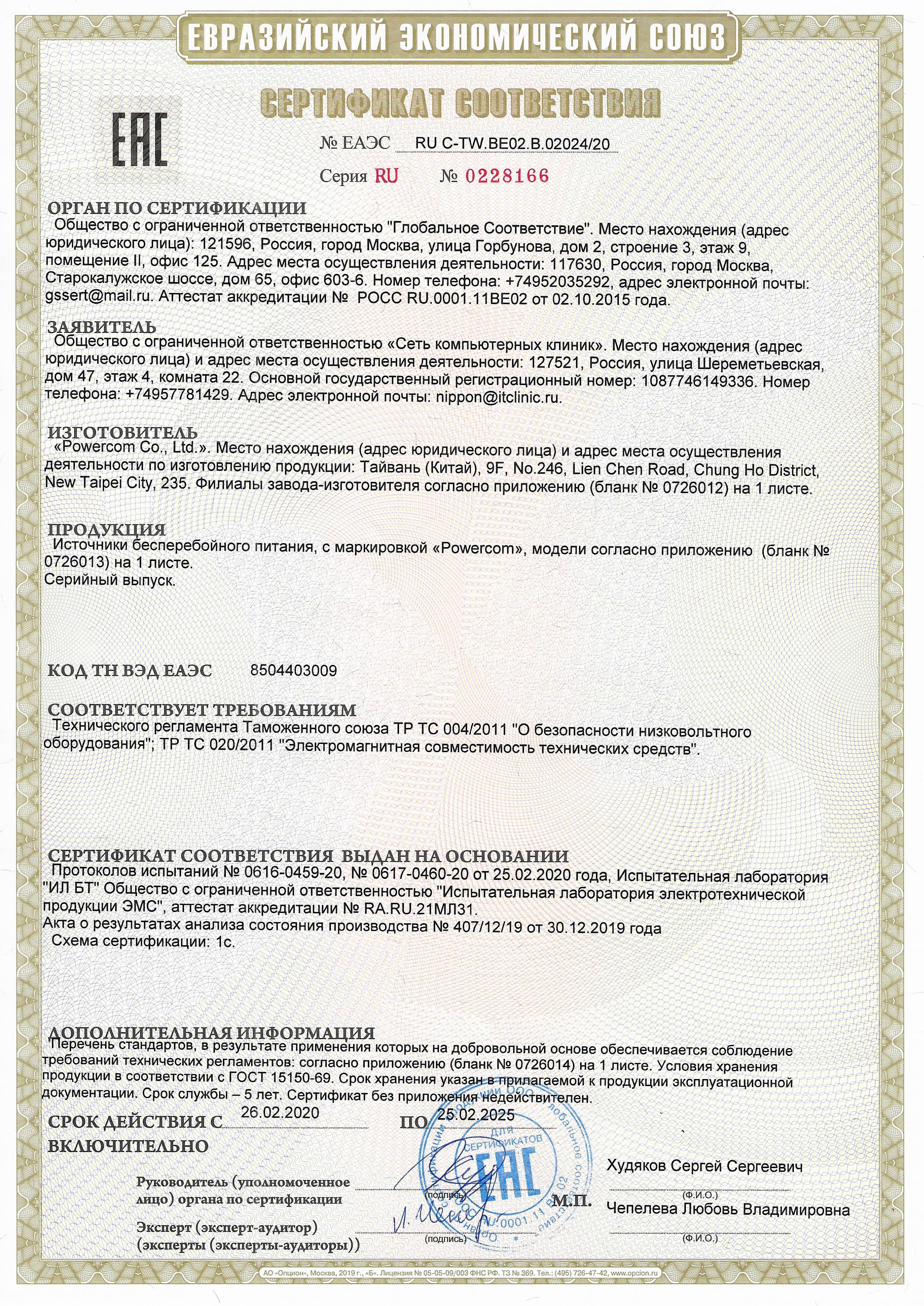 Дефекты, которые могут появиться в течение гарантийного срока, будут бесплатно устранены сервисными центрами POWERCOM при соблюдении следующих условий: