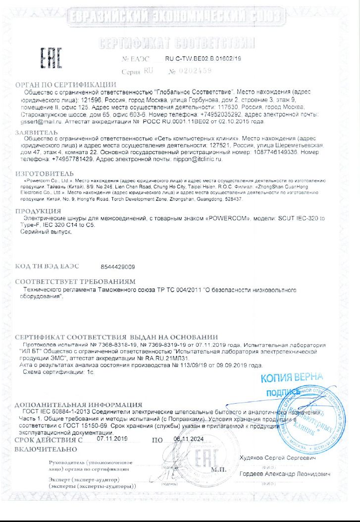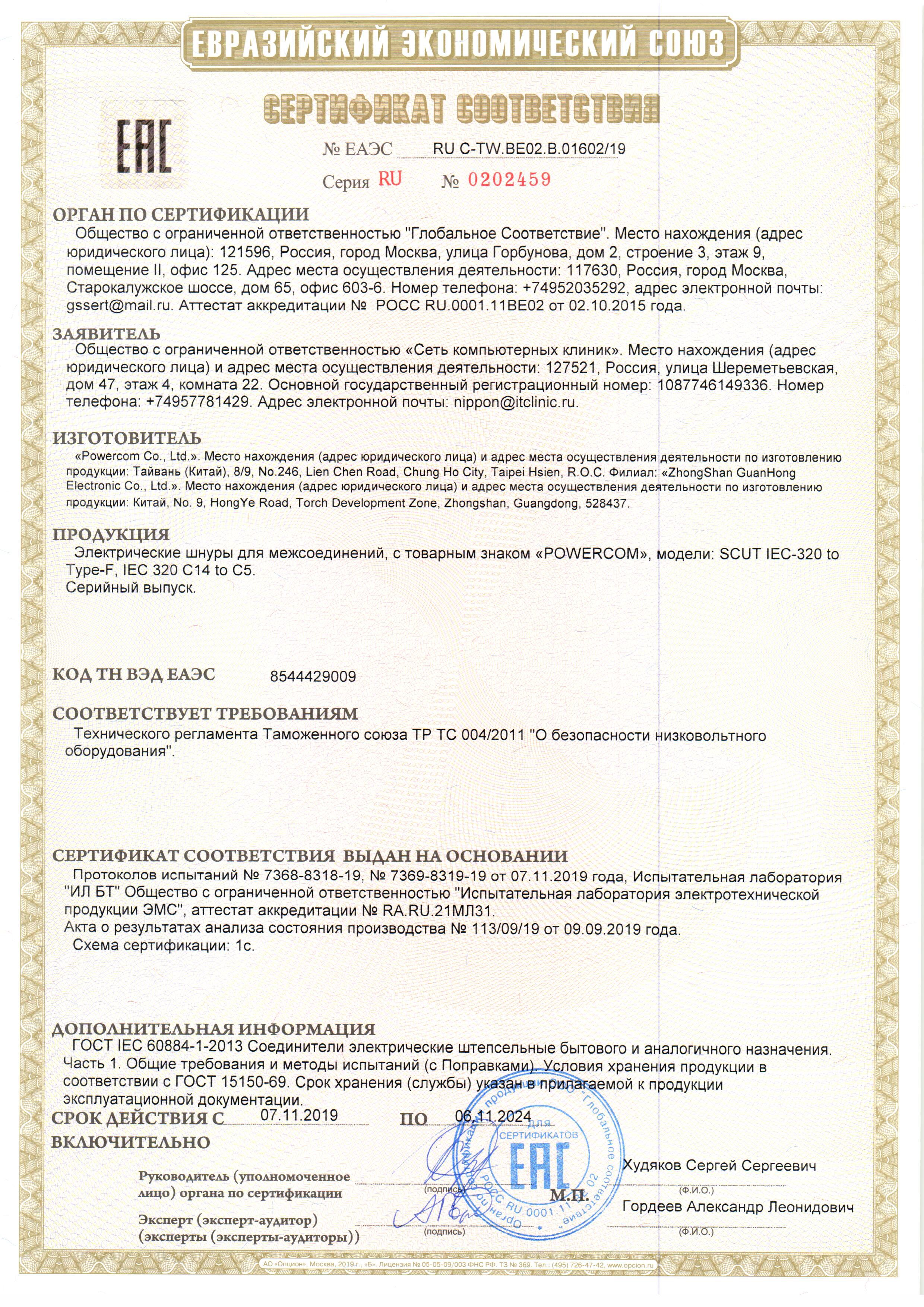 ЕАЭС RU TW.ВЕ02.В01602/19 | 06.11.2019 | 05.11.2024 |