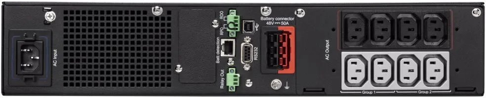 Коэффициент мощности равный 1. Коэффициент полезного действия - до 98%. Встроенный мастер замены батареи. Мастер ввода в эксплуатацию. Возможность удаленной настройки, удаленного обновления прошивки ИБП. С сетевой картой работает в виртуальных средах. -