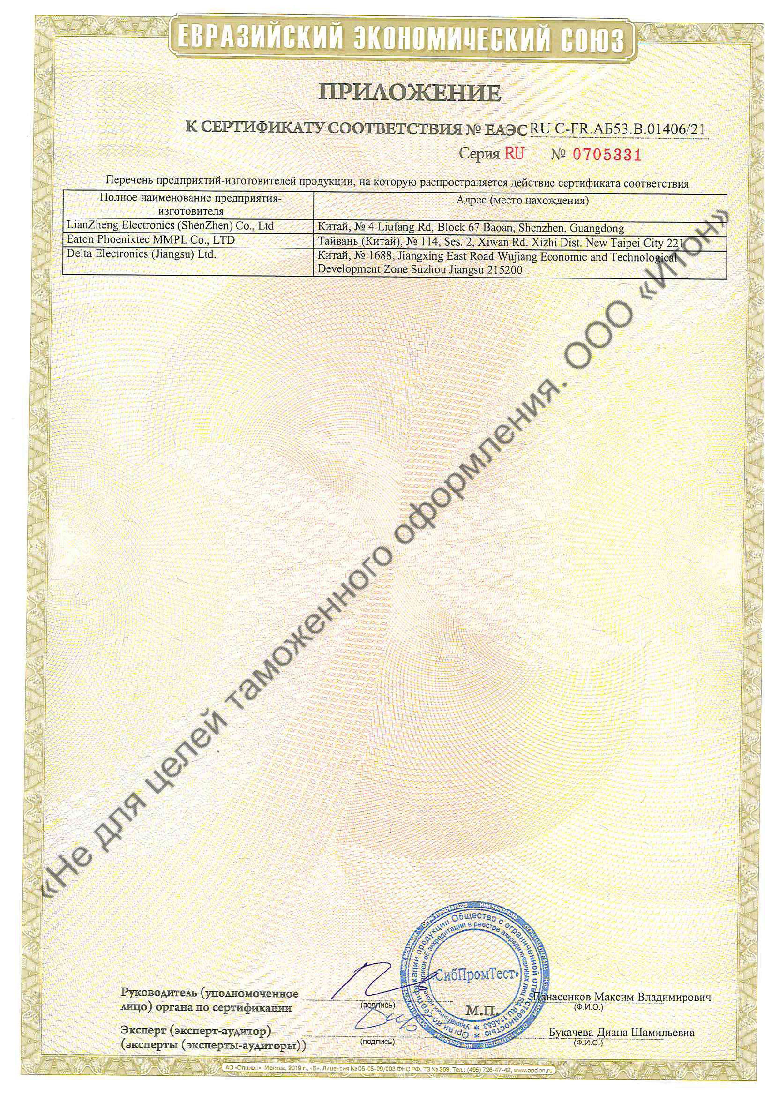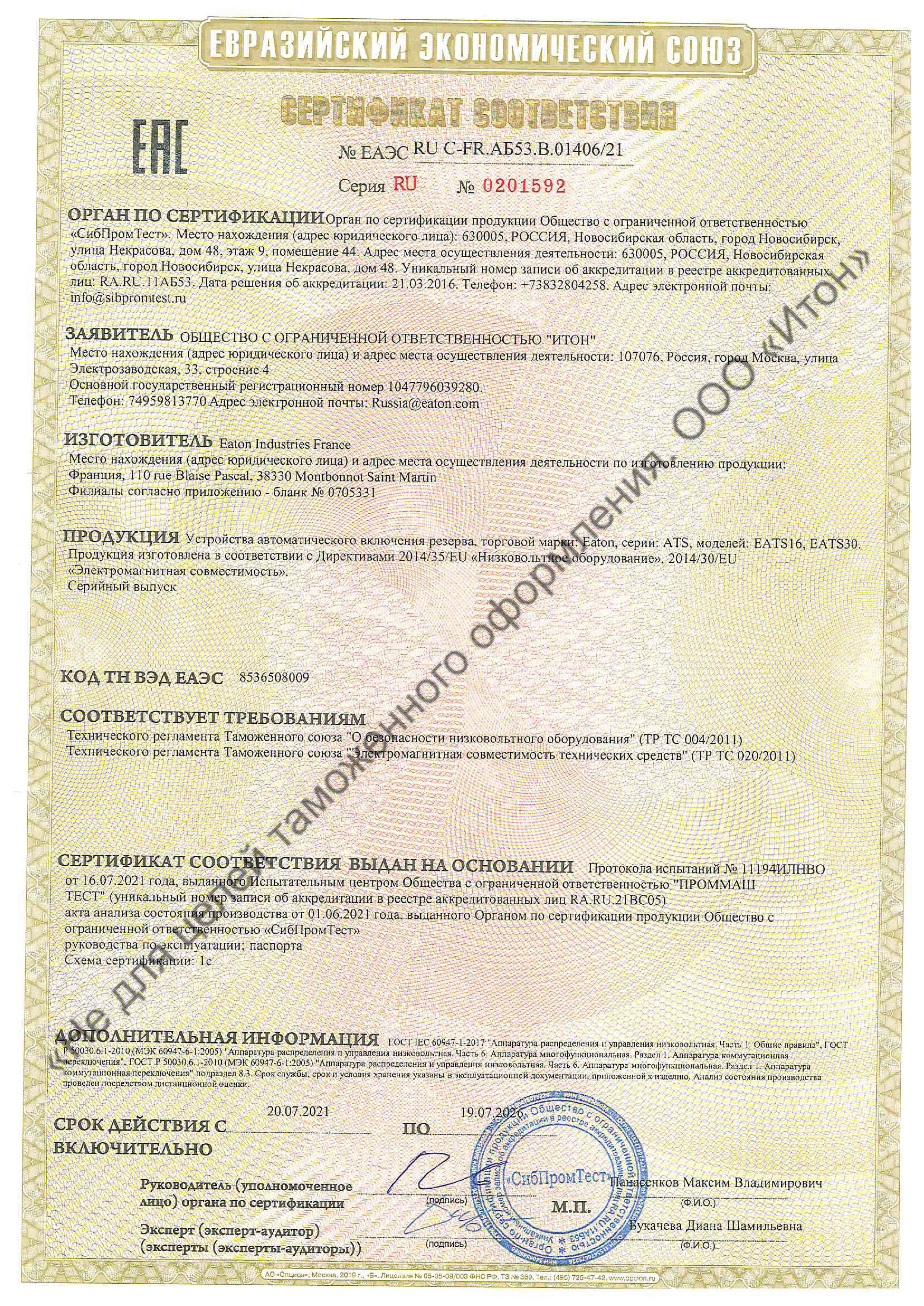 ЕАЭС RU С-FR.АБ53.В.01406/21 | 19.07.2021 | 18.07.2026 |