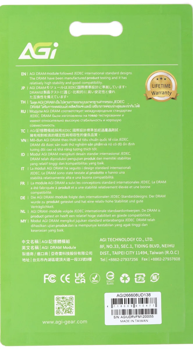 Память DDR4 8Gb 2666MHz AGi AGI266608UD138 UD138 RTL PC4-21300 DIMM 288-pin 1.2В (AGI266608UD138)