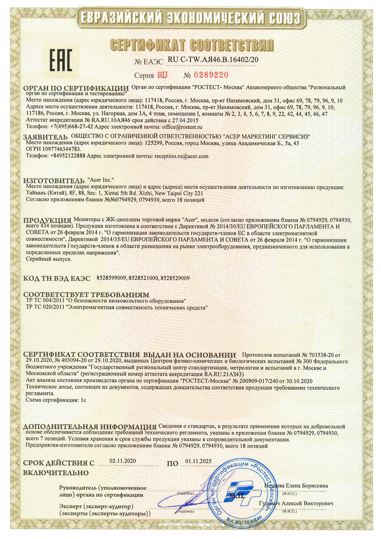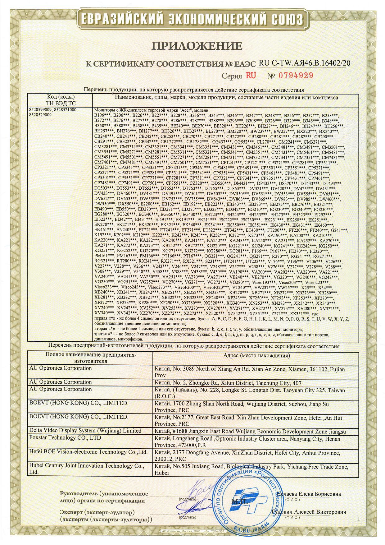 Обязательства по гарантийному обслуживанию продукции Acer несут авторизованные сервис-центры.