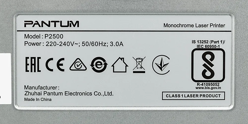 Монохромный лазерный принтер торговой марки PANTUM модели: P2200W, P2206W, P2208W, P2500NW, P2500W,... | Сертификат соответствия | 10.12.2018 | 09.12.2023 |