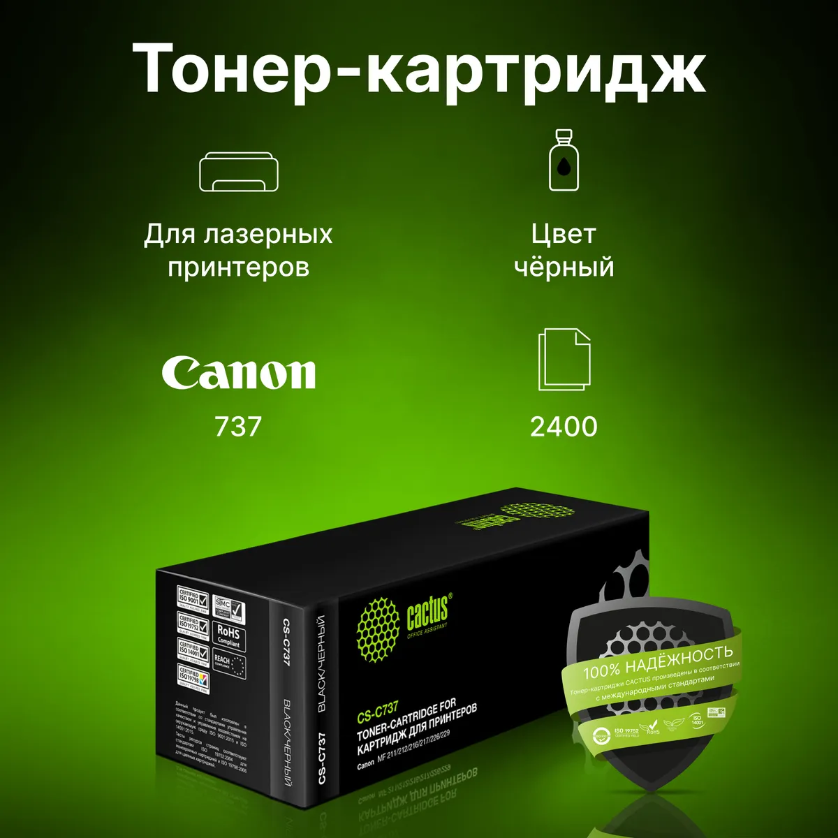 Картридж лазерный Cactus CS-C737 737 черный (2400стр.) для (CS-C737)