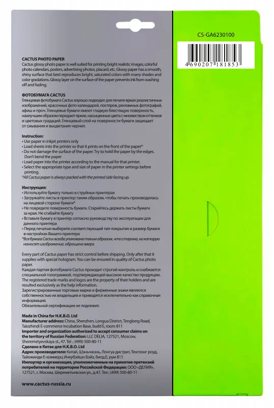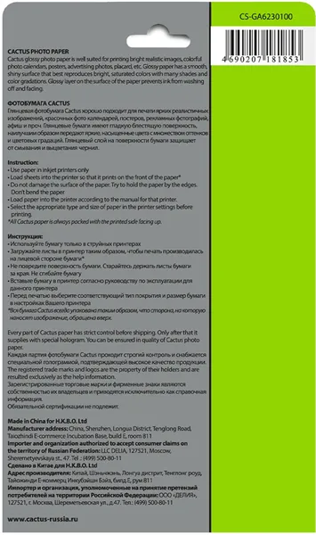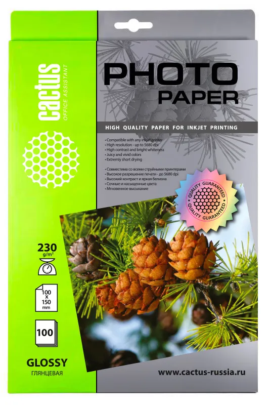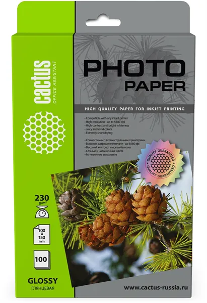 Фотобумага Cactus CS-GA6230100 10x15/230г/м2/100л./белый глянцевое для струйной печати (CS-GA6230100)