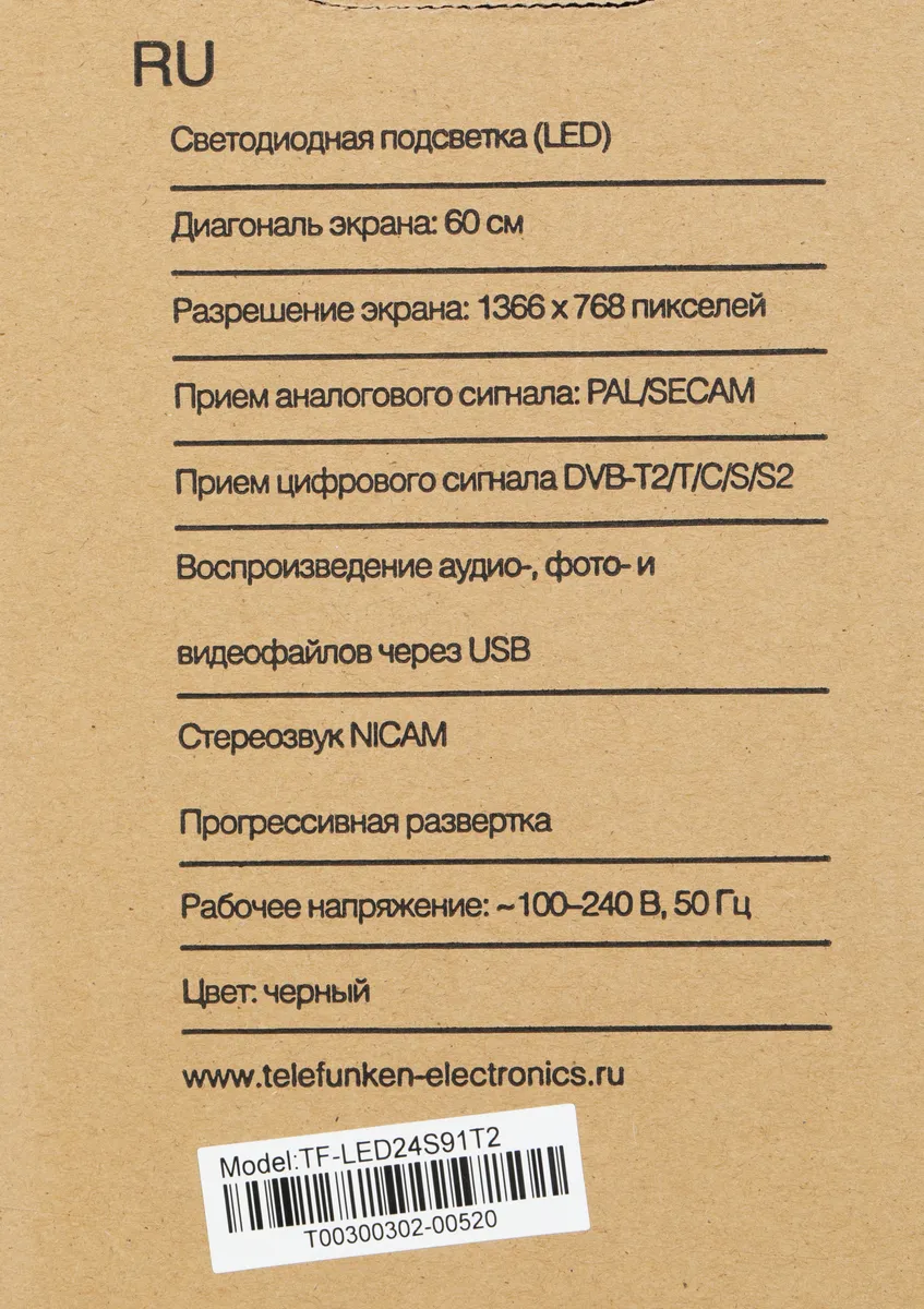 Телевизор LED Telefunken 24" TF-LED24S91T2(черный) черный/черный HD 50Hz DVB-T DVB-T2 DVB-C DVB-S (TF-LED24S91T2(ЧЕРНЫЙ))