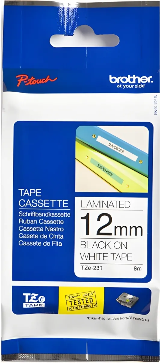 12мм (черный шрифт на белом фоне) для P-Touch -