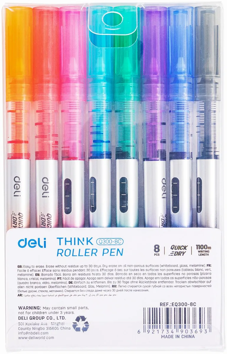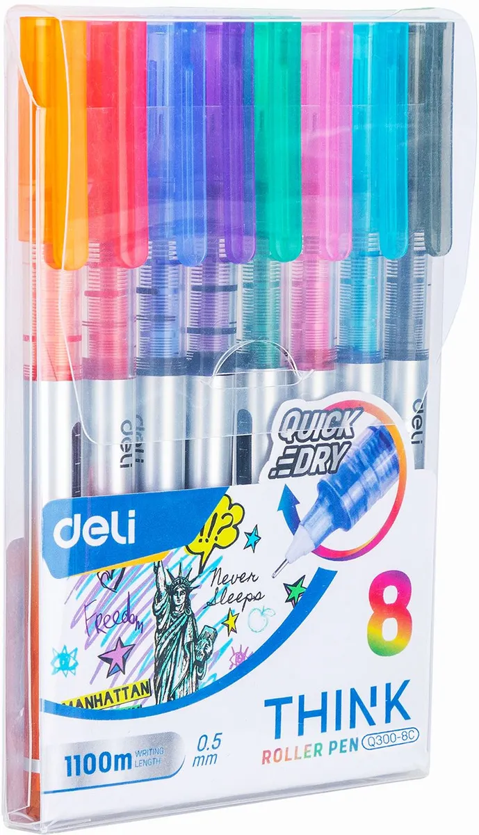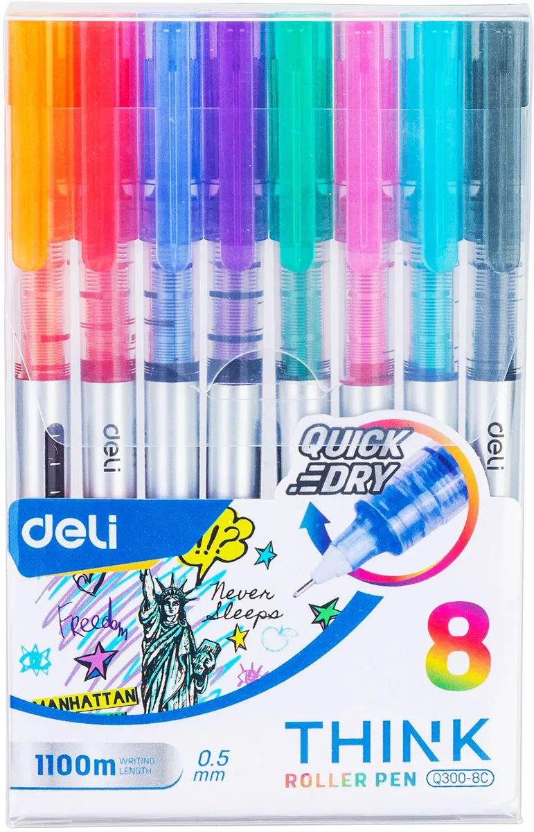 Набор ручек роллер Deli Think EQ300-8C ассорти d=0.5мм (EQ300-8C)