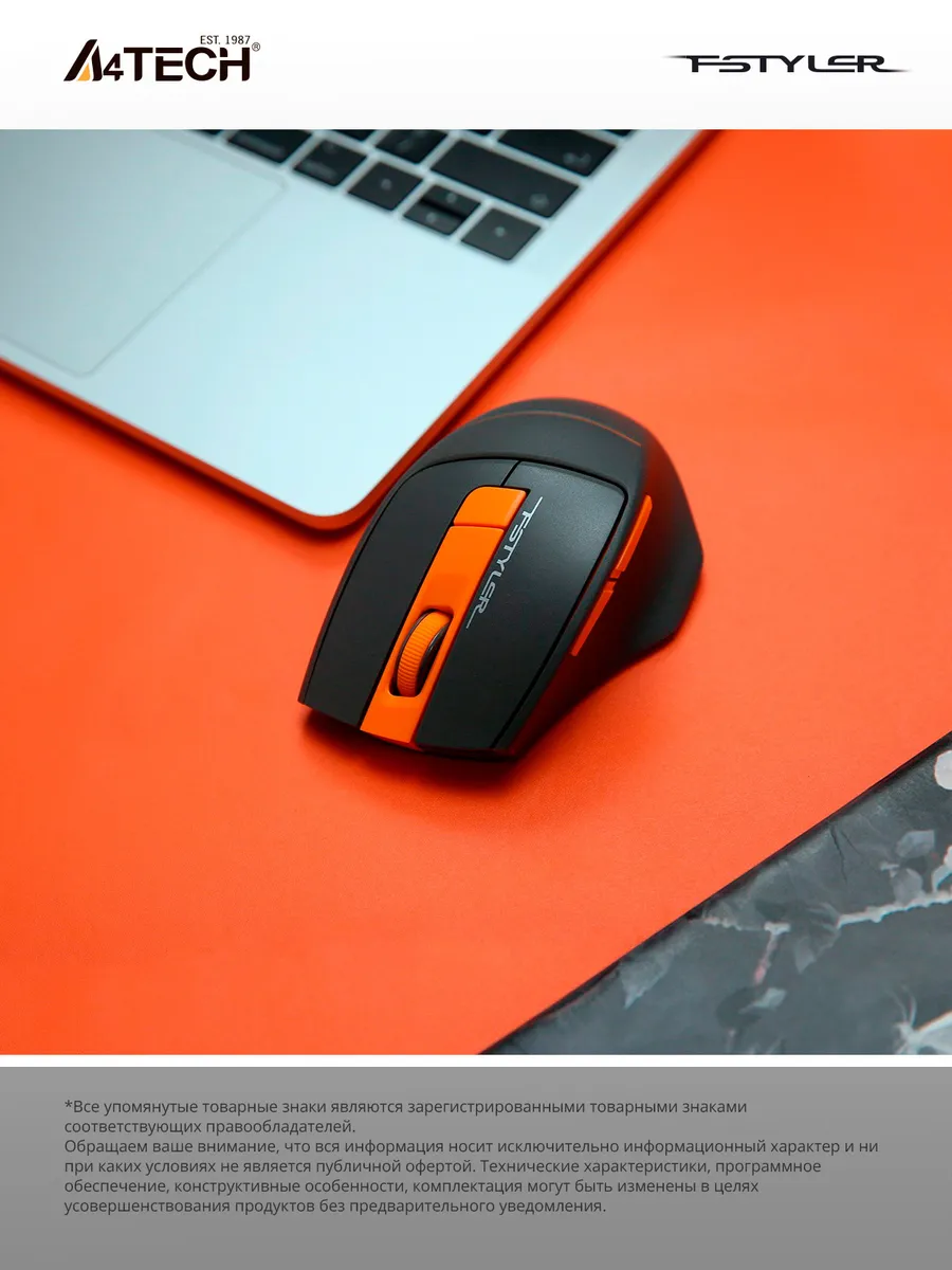 Мышь A4Tech Fstyler FG30 серый/оранжевый оптическая (2000dpi) беспроводная USB (6but) (FG30 ORANGE)