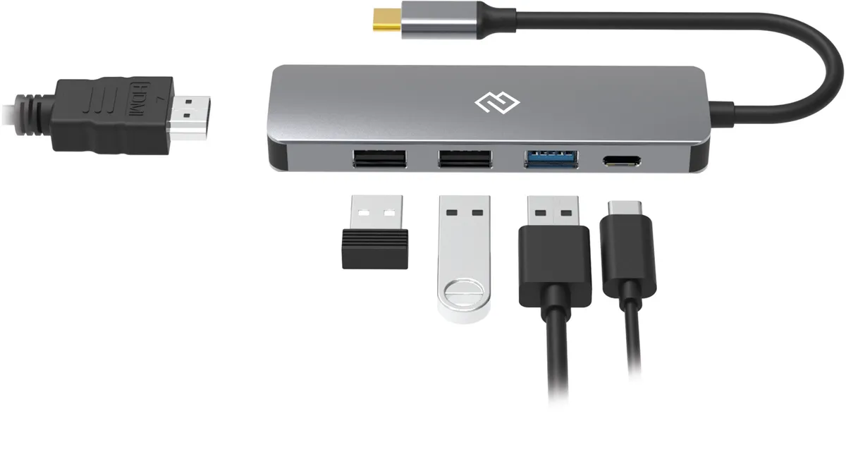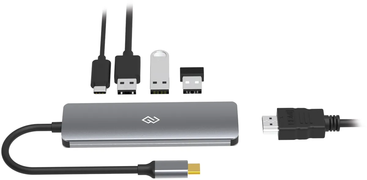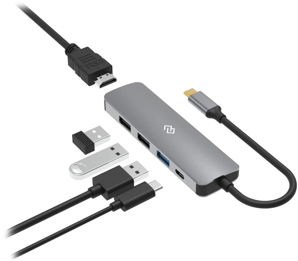 Type-C док-станция DIGMA, 5 портов - 1x HDMI( 4K@30Hz) +1x 3.2 USB-A Gen.1( 5Gbps)+ 2x USB-A 2.0 (480 Mbps) + 1 x USB-C PD 3.0 100W -