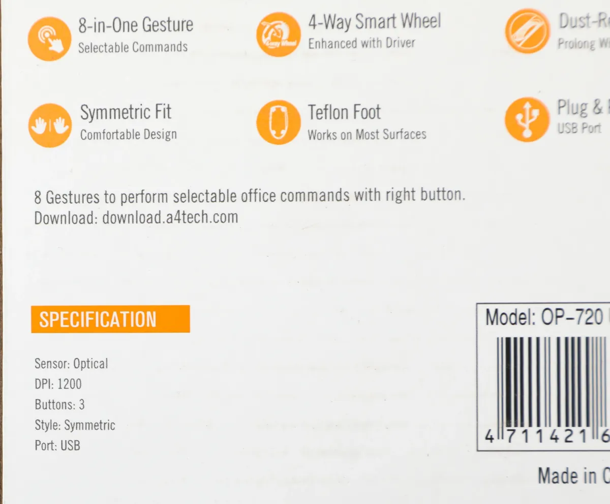Мышь A4Tech OP-720 черный оптическая (1200dpi) USB (3but) (OP-720 USB (BLACK))