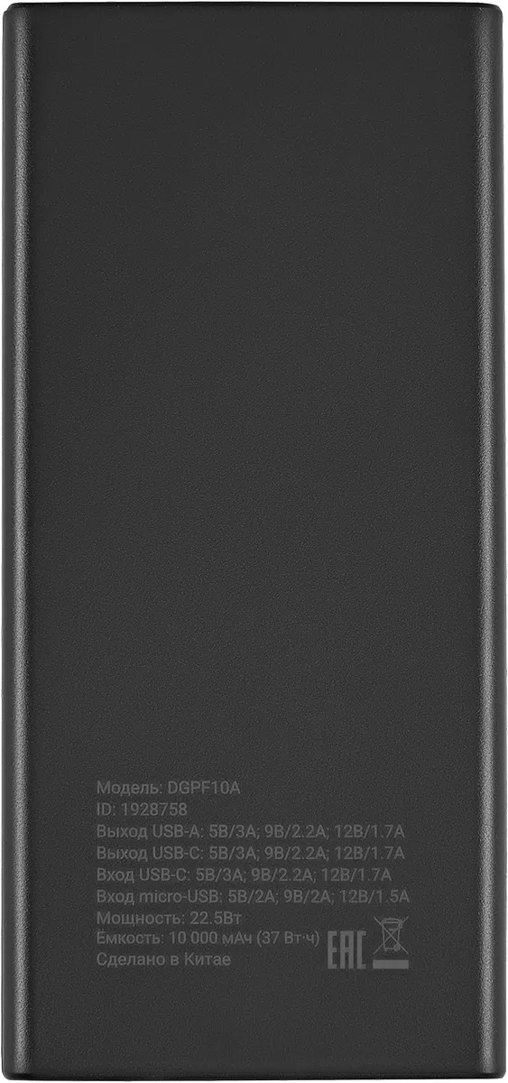 Мобильный аккумулятор Digma DGPF10A 10000mAh QC3.0/PD3.0 22.5W 5A 2xUSB-A/USB-C черный (DGPF10A22PBK) (DGPF10A22PBK)