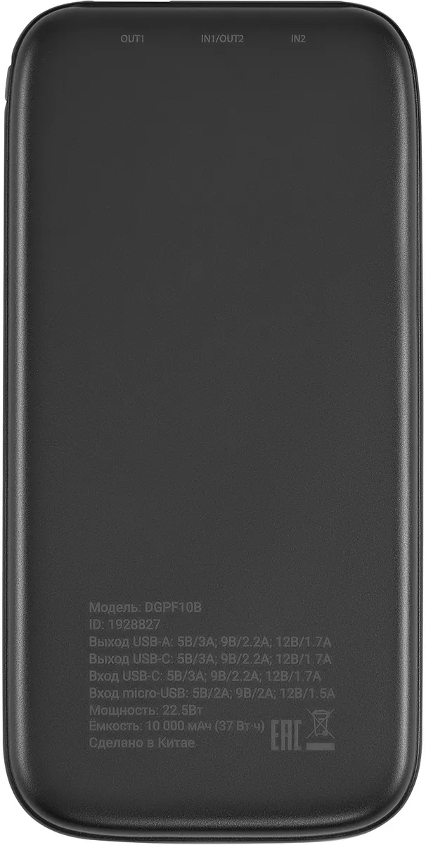 | Мобильный аккумулятор Digma DGPF10B 10000mAh QC3.0/PD3.0 22.5W 3A USB-A/USB-C черный (DGPF10B22PBK) | ЕАЭС RU С-VG.НА96.В.01891/22 | 10.03.2022 | 09.03.2027 |