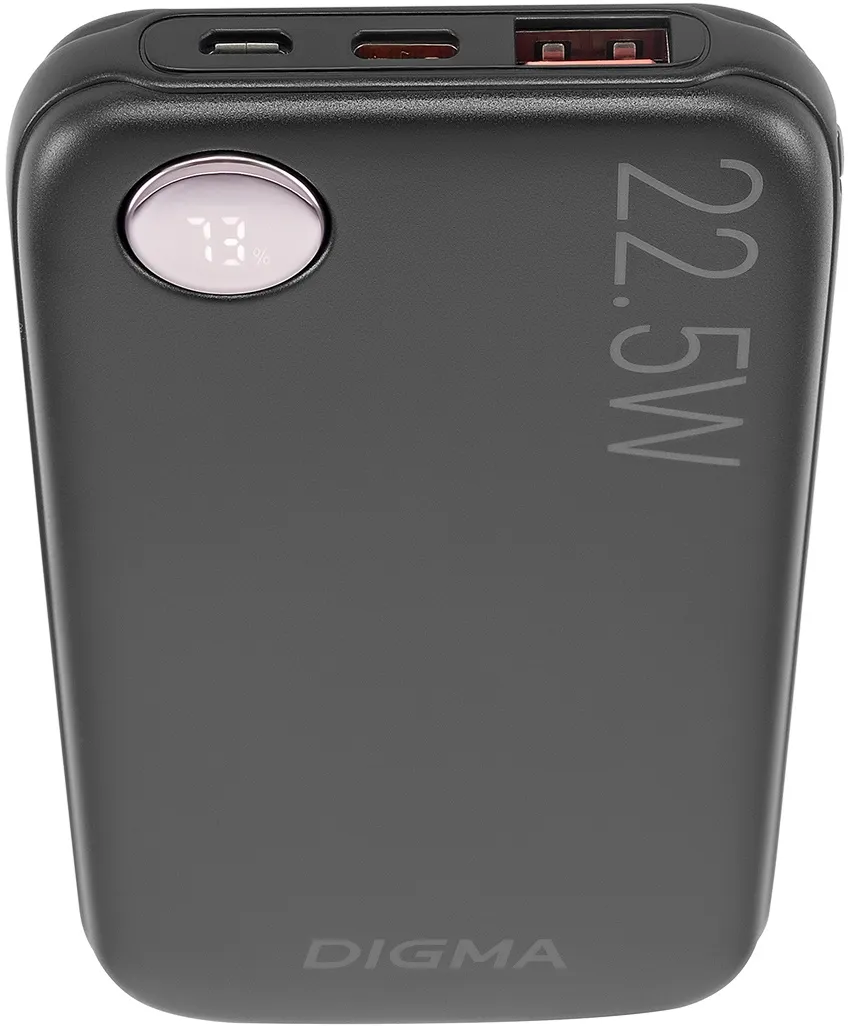 Мобильный аккумулятор Digma DGPF10B 10000mAh QC3.0/PD3.0 22.5W 3A USB-A/USB-C черный (DGPF10B22PBK) (DGPF10B22PBK)