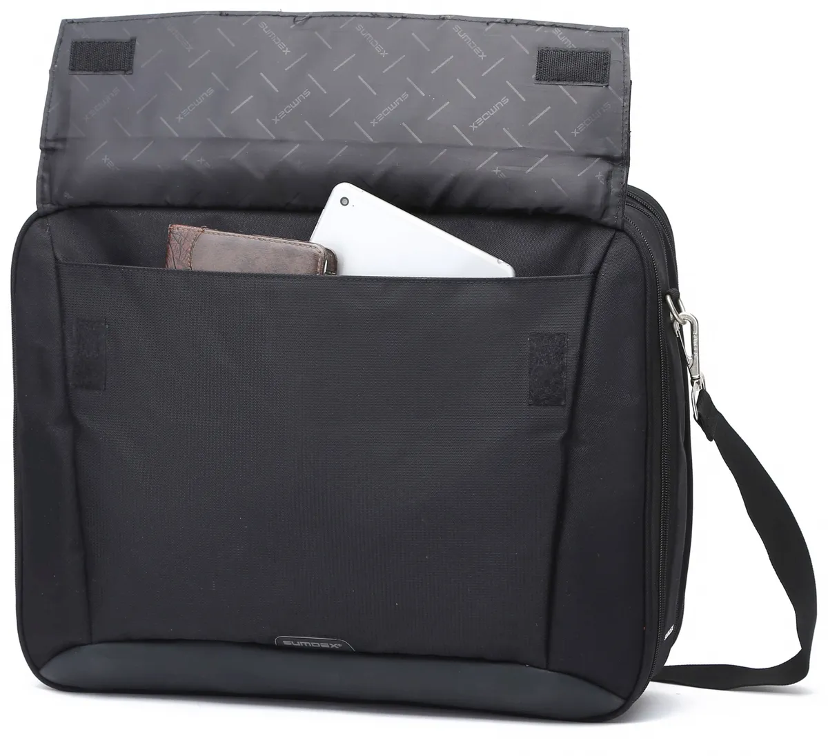 Легкая сумка с верхней загрузкой для ноутбука. Большое переднее отделение для документов и аксессуаров. Мягкая эргономичная ручка для переноски. Эргономичный съемный плечевой ремень -