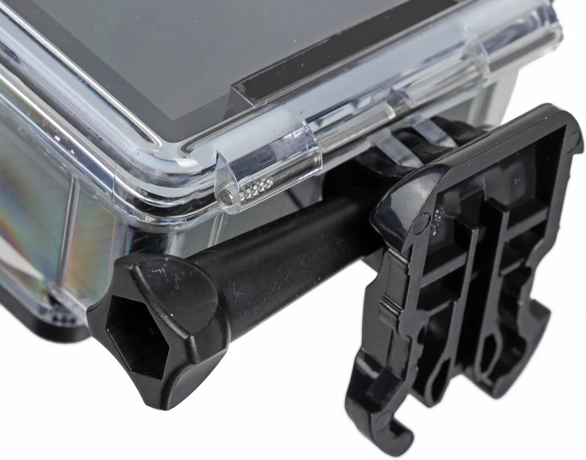 Основное крепление Крепление на руль велосипеда Крепление для плоской поверхности Адаптер-кронштейн 1 Адаптер-кронштейн 2 Рамка Повязка-бандаж Пульт ДУ Внешний микрофон -