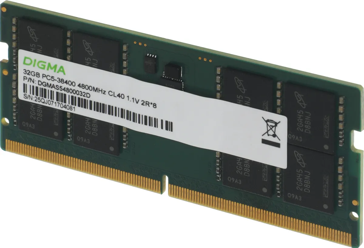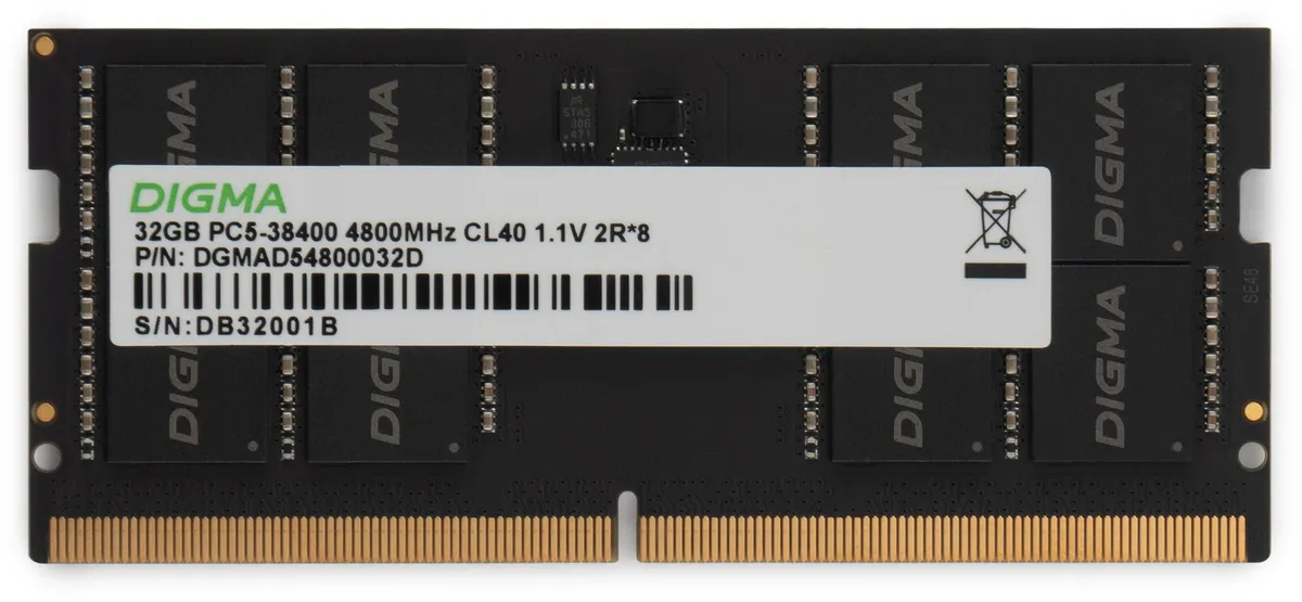 Память DDR5 32GB 4800MHz Digma DGMAS54800032D RTL PC5-38400 CL40 SO-DIMM 288-pin 1.1В (DGMAS54800032D)