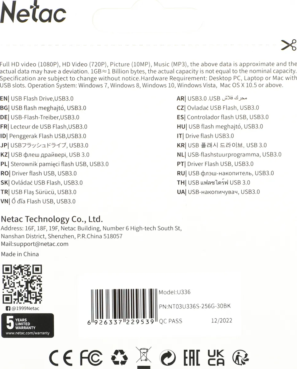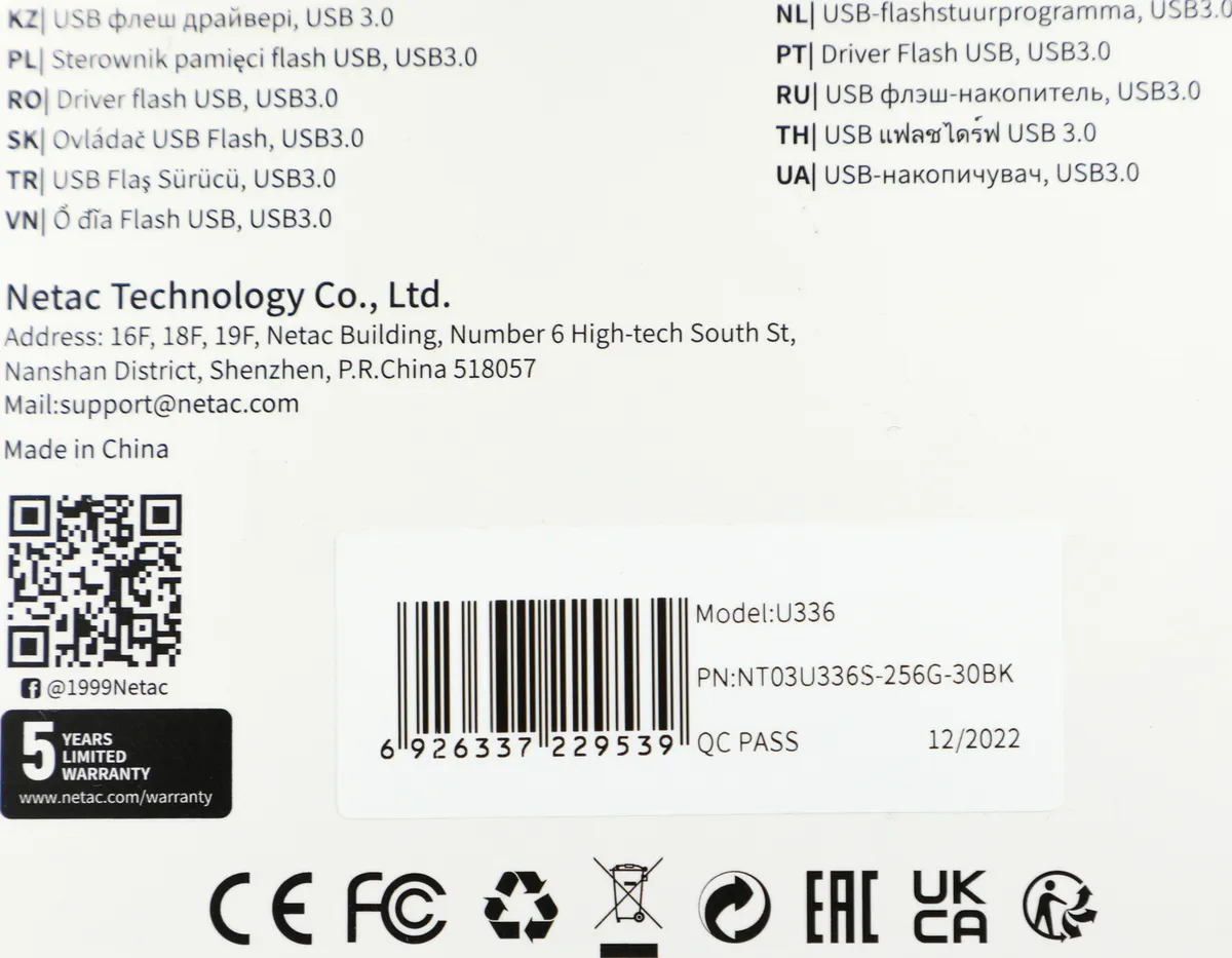 Флеш Диск Netac 256Gb U336 NT03U336S-256G-30BK USB3.0 черный