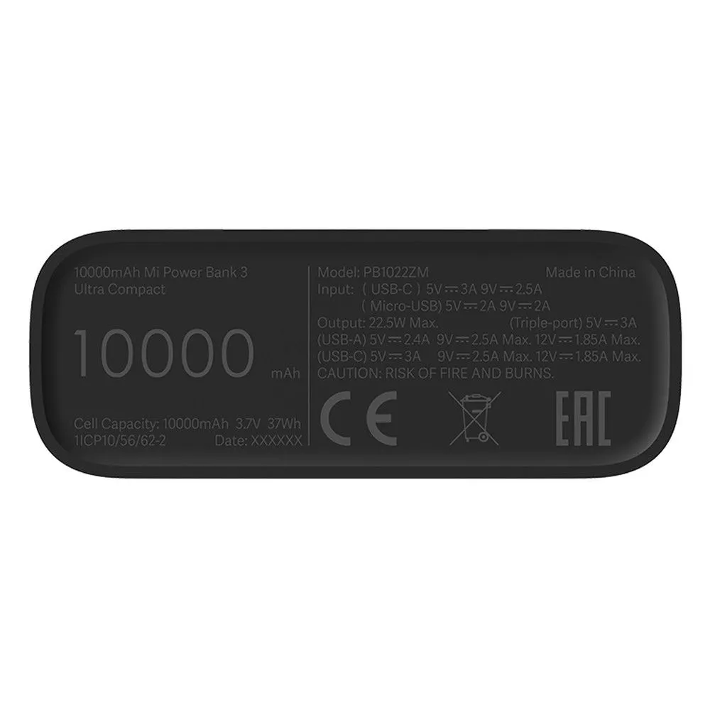Мобильный аккумулятор Xiaomi Mi Power Bank 3 Ultra Compact 10000mAh 3A черный (BHR4412GL)