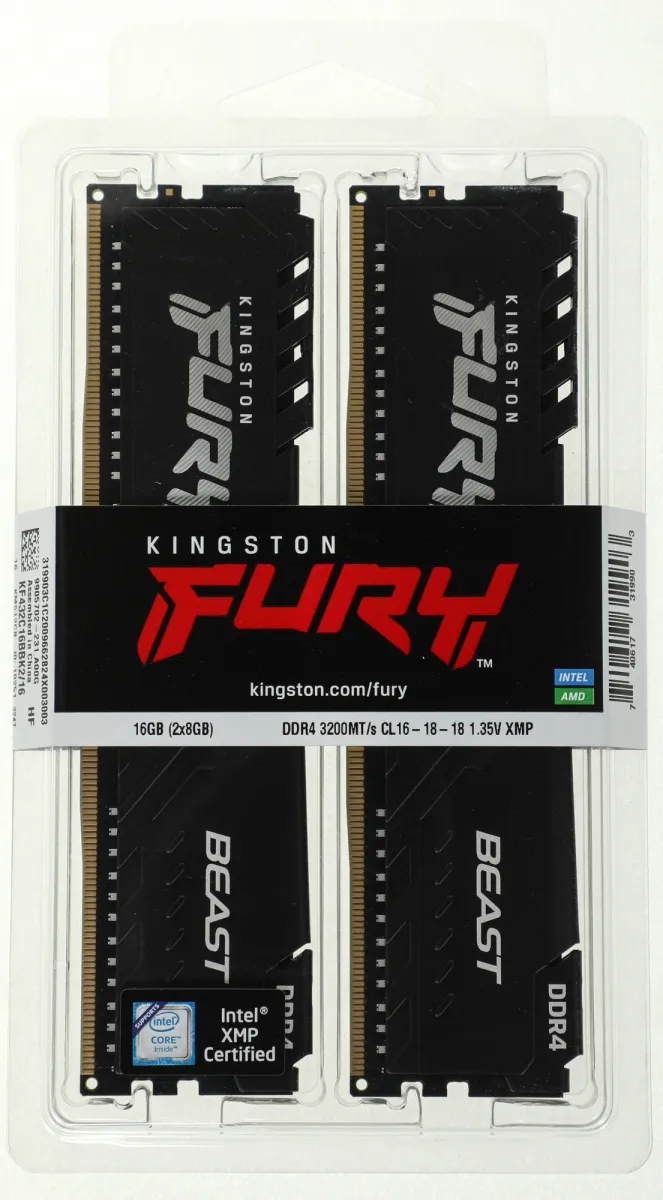 Память DDR4 2x8Gb 3200MHz Kingston KF432C16BBK2/16 Fury Beast Black RTL Gaming PC4-25600 CL16 DIMM 288-pin 1.35В kit dual rank с радиатором Ret