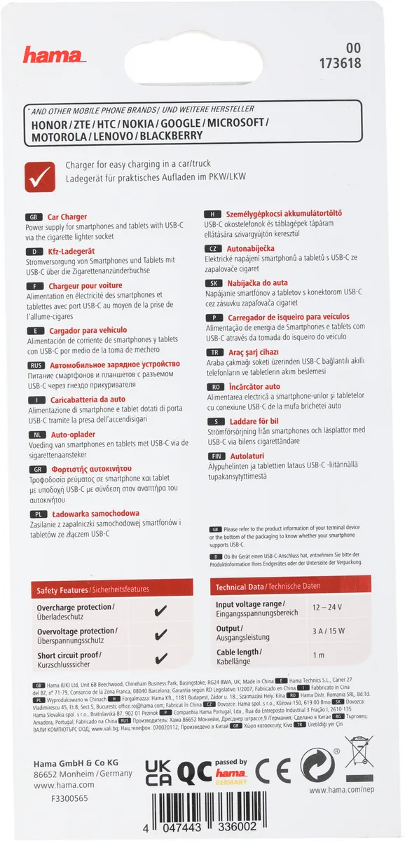 | Автомобильное зар./устр. Hama H-173618 3A (PD) универсальное черный (00173618) | ЕАЭС | 04.06.2020 | 03.06.2025 |
