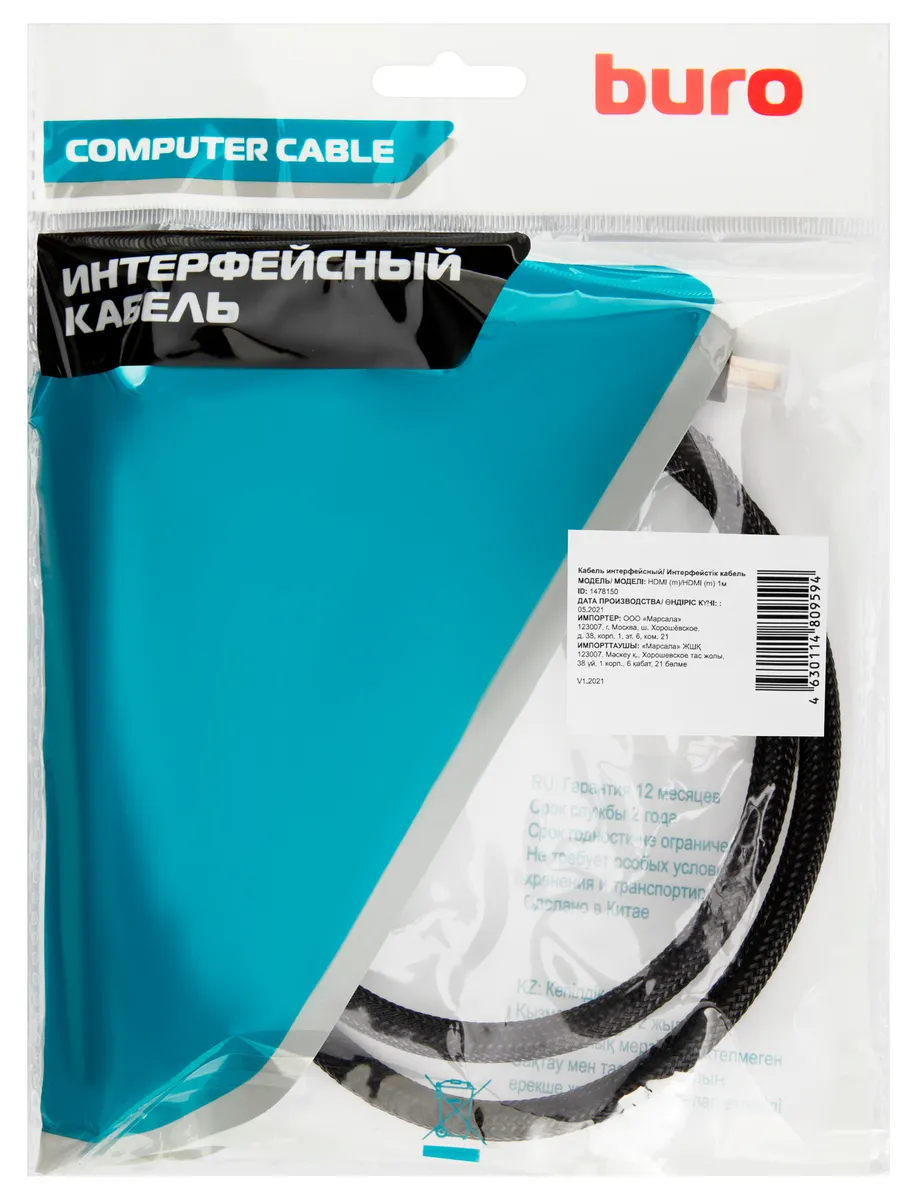 Кабель аудио-видео Buro HDMI (m)/HDMI (m) 1м. феррит.кольца (HDMI-V1.4-1MC)