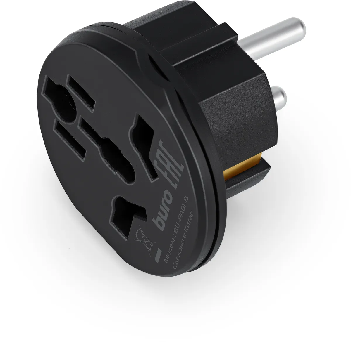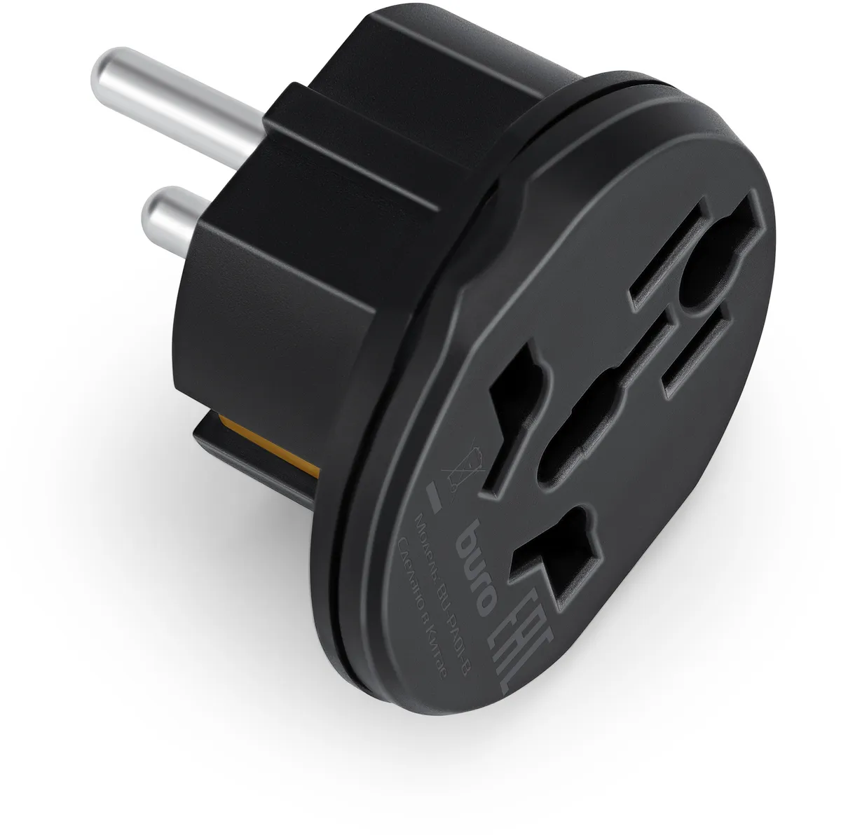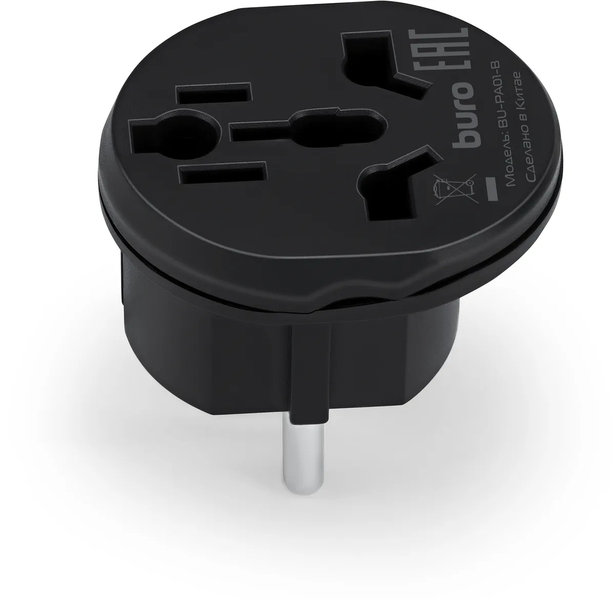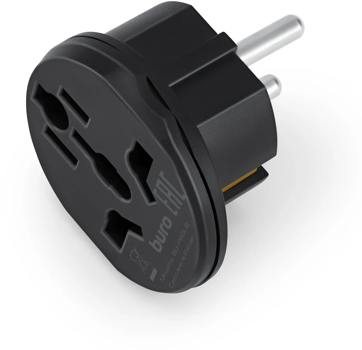 Адаптер-переходник Buro BU-PA01-B (1 розетка) черный (пакет ПЭ) (BU-PA01-B)