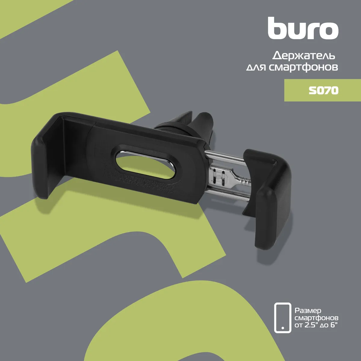 Держатель Buro S070 черный для смартфонов 2.5-6" (S070)