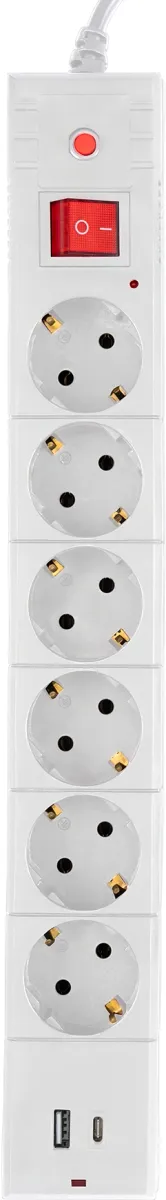 Сетевой фильтр Buro BU-SP1.8_USB_2A-W 1.8м (6 розеток) белый (коробка) (BU-SP1.8_USB_2A-W)