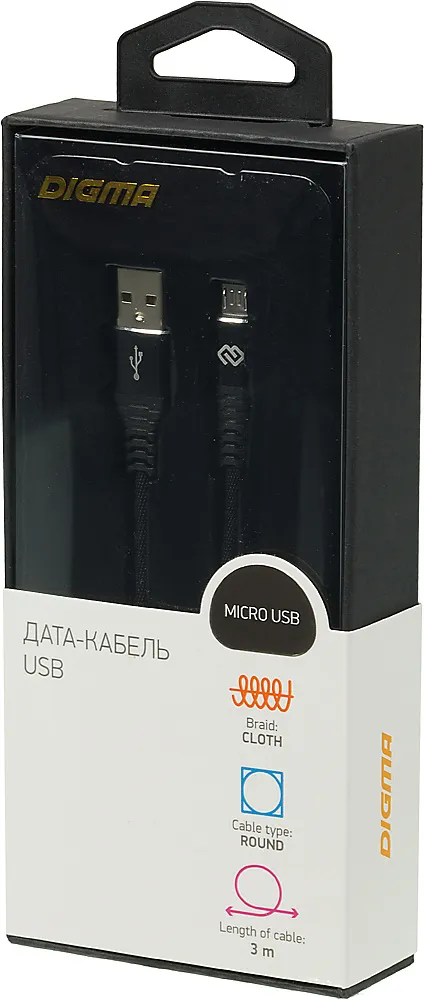 Кабель Digma MICROUSB-3M-BRAIDED-BLK USB (m)-micro USB (m) 3м черный (MICROUSB-3M-BRAIDED-BLK)