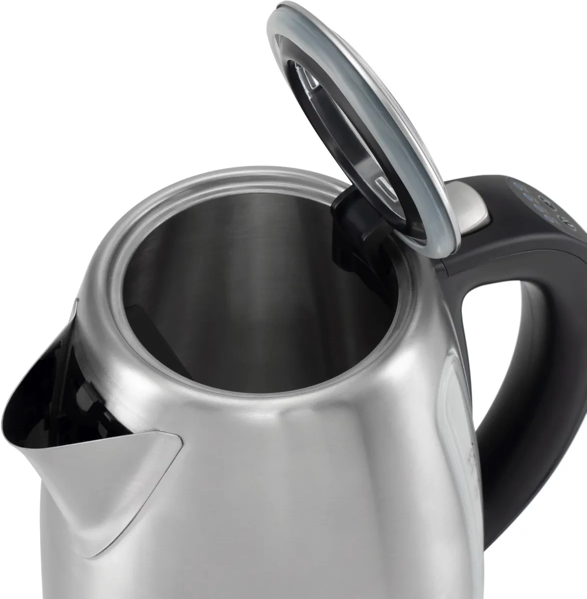 Стильный металлически чайник, с регулировкой температуры на ручке, красивой голубой подсветкой и не обычной формы шкалой уровня воды, фильтром от накипи и прозрачной крышкой , станет незаменимым помощником на вашей кухне. -