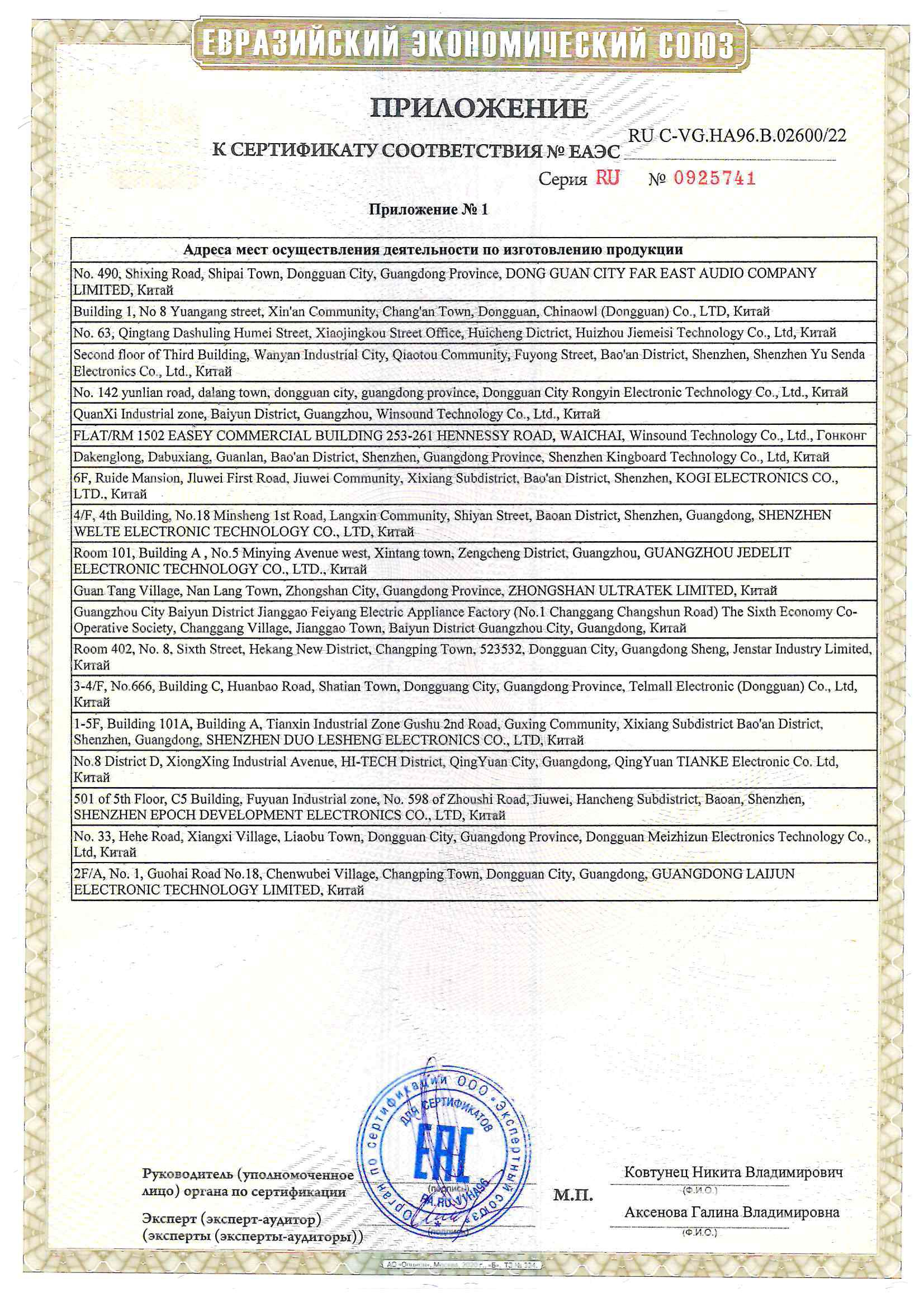 ЕАЭС RU С-VG.НА96.В.02600/22 | 27.11.2022 | 26.11.2027 |