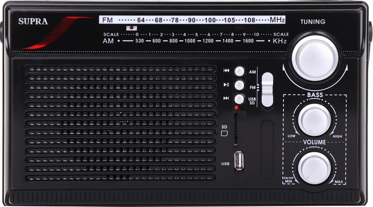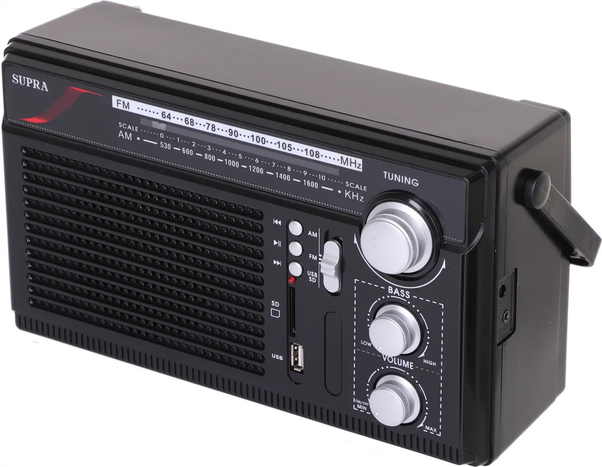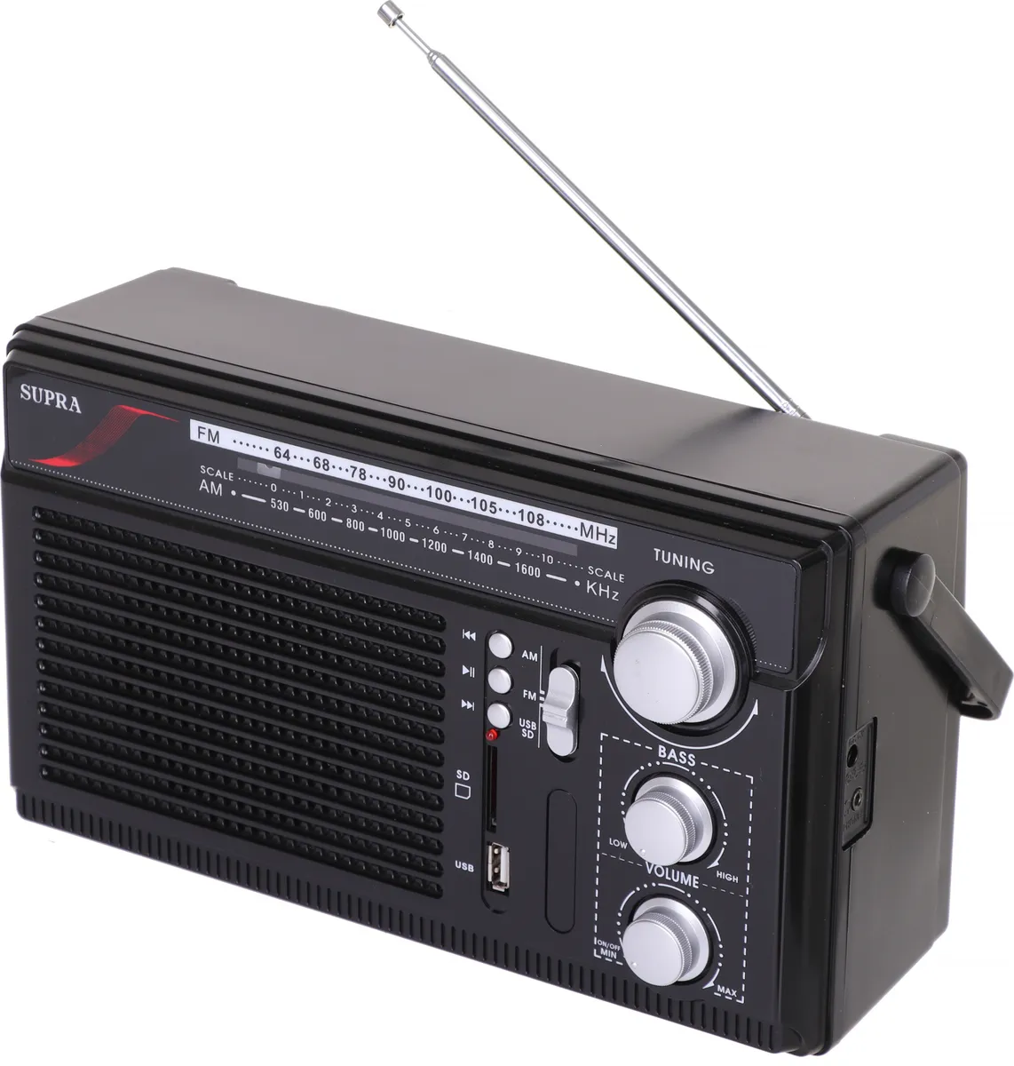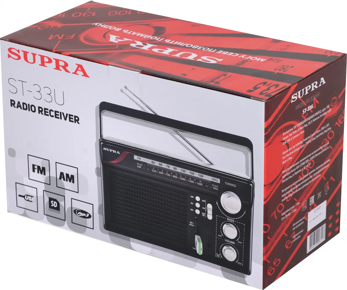 Радиоприемник портативный Supra ST-33U черный USB SD
