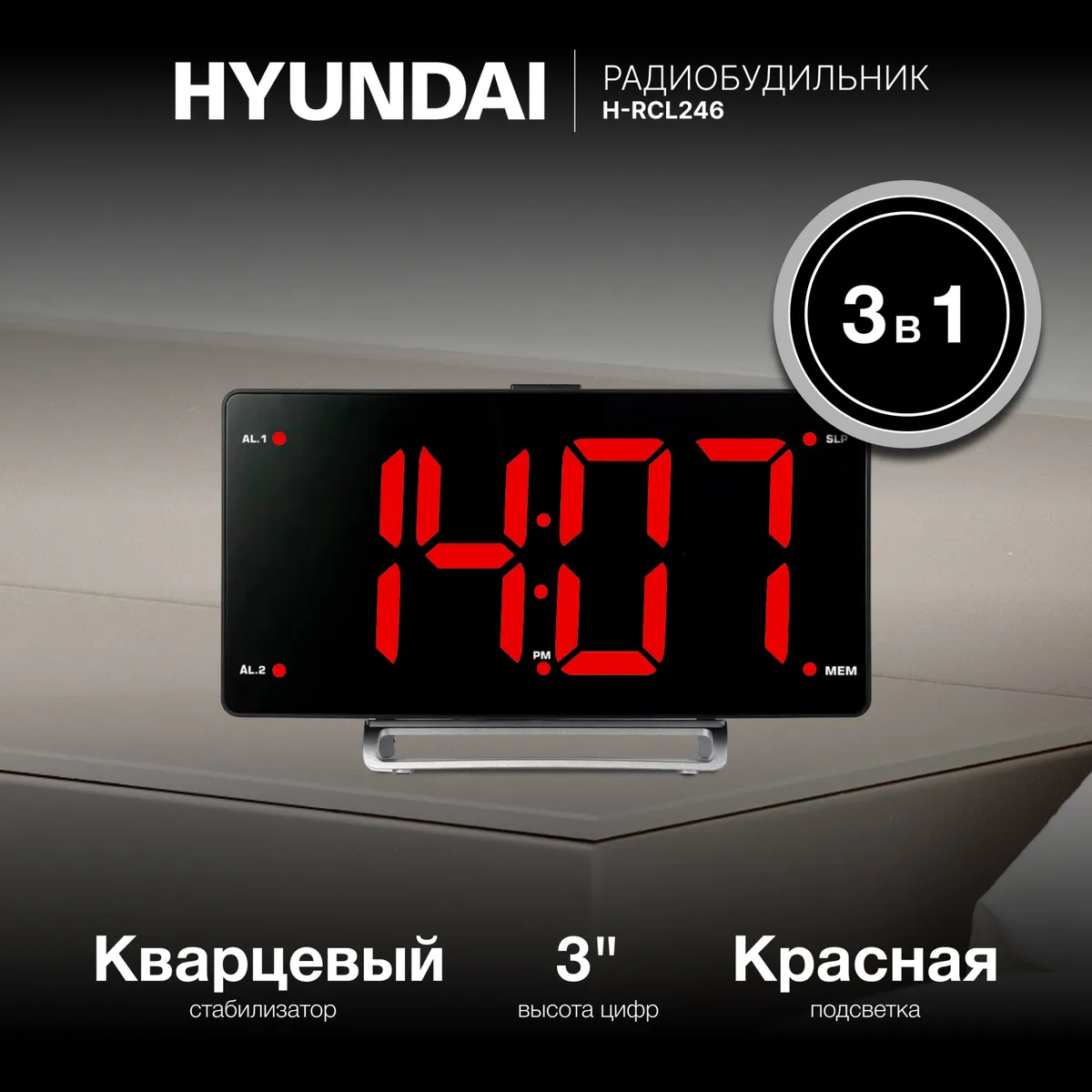 Радиобудильник Hyundai H-RCL246 черный LCD подсв:зеленая часы:цифровые FM (H-RCL246)