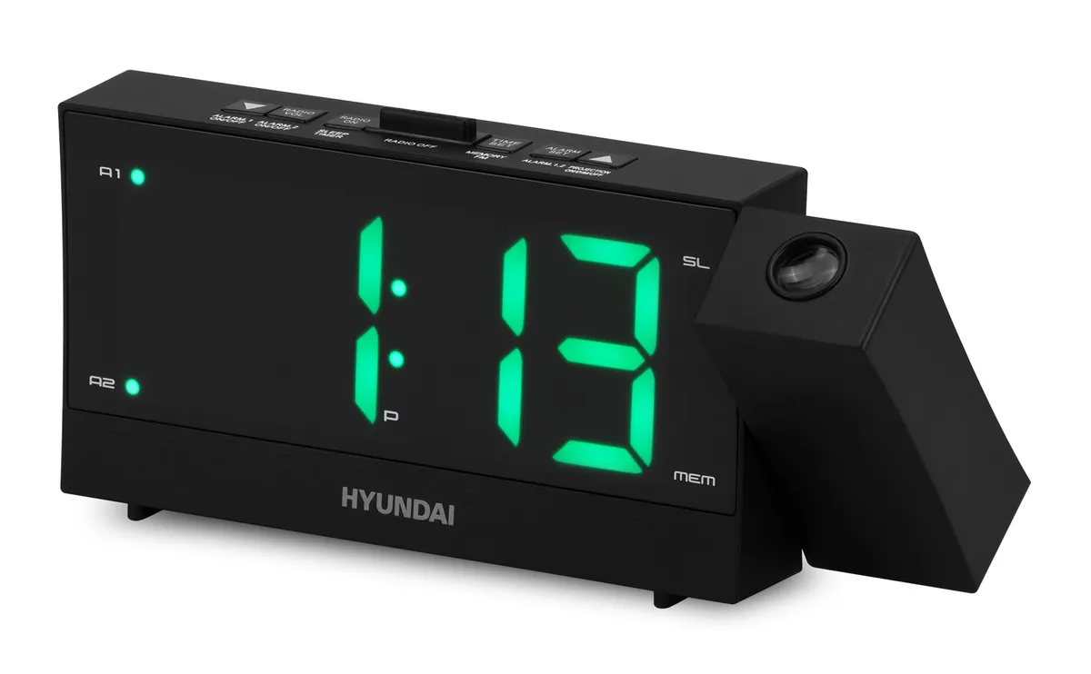 Радиобудильник Hyundai H-RCL243 черный LCD проек.изоб. подсв:зеленая часы:цифровые (H-RCL243)