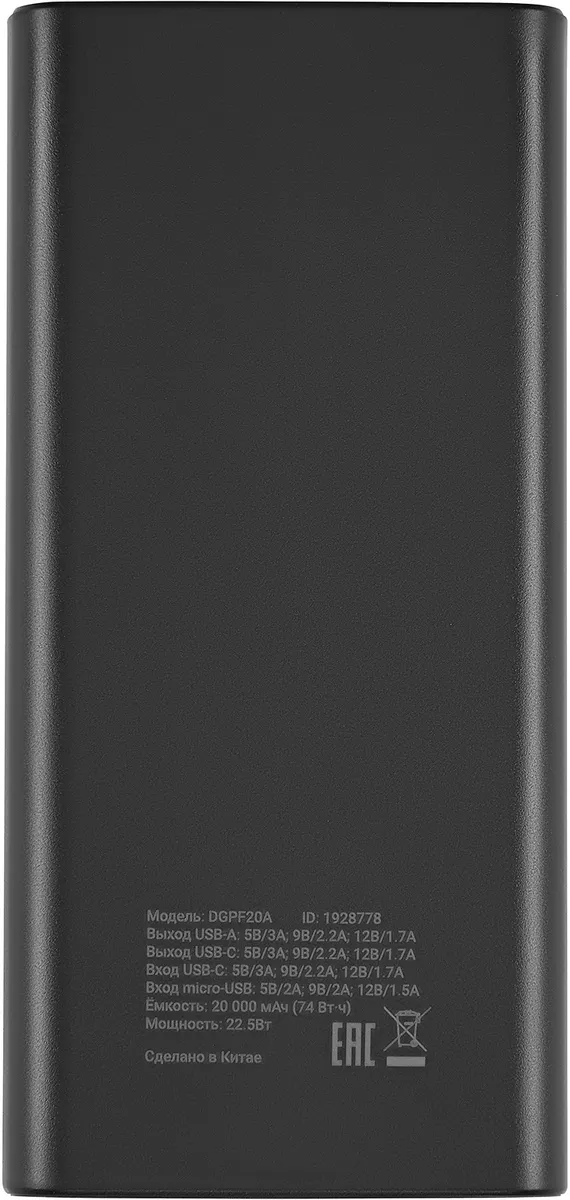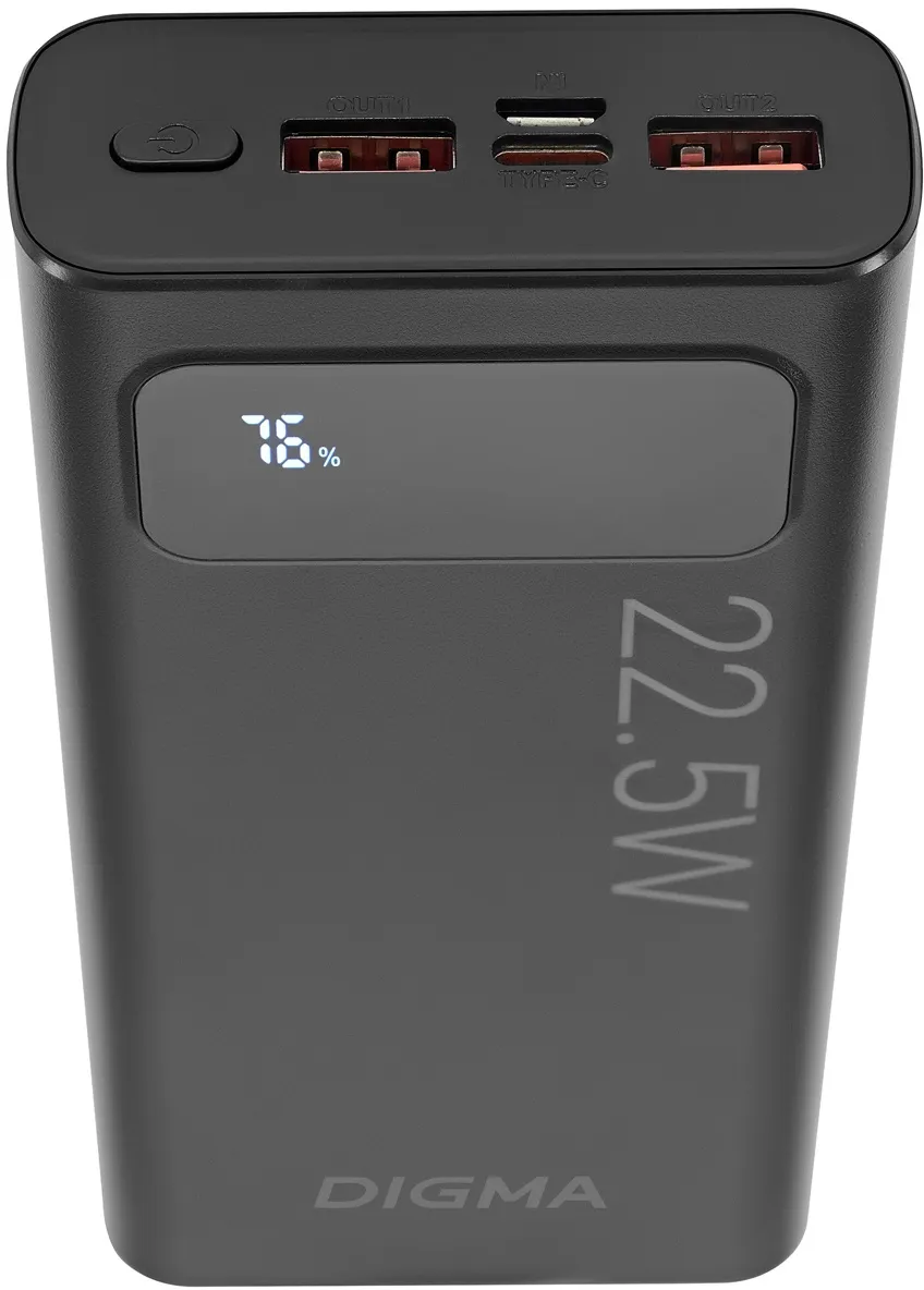 Мобильный аккумулятор Digma DGPF20A 20000mAh QC3.0/PD3.0 22.5W 3A 2xUSB-A/USB-C черный (DGPF20A22PBK) (DGPF20A22PBK)