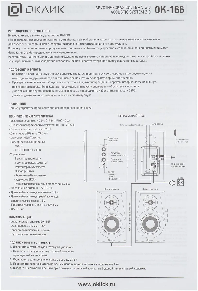 | Колонки Оклик OK-166 BT 2.0 черный 40Вт BT | ЕАЭС RU С-VG.АД11.В.00022/23 | 16.05.2023 | 15.05.2028 |