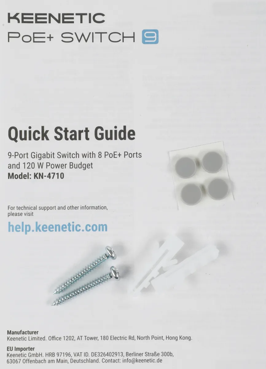Устройство, Адаптер питания, Самоклеящиеся резиновые ножки, Комплект настенного монтажа, Инструкция -